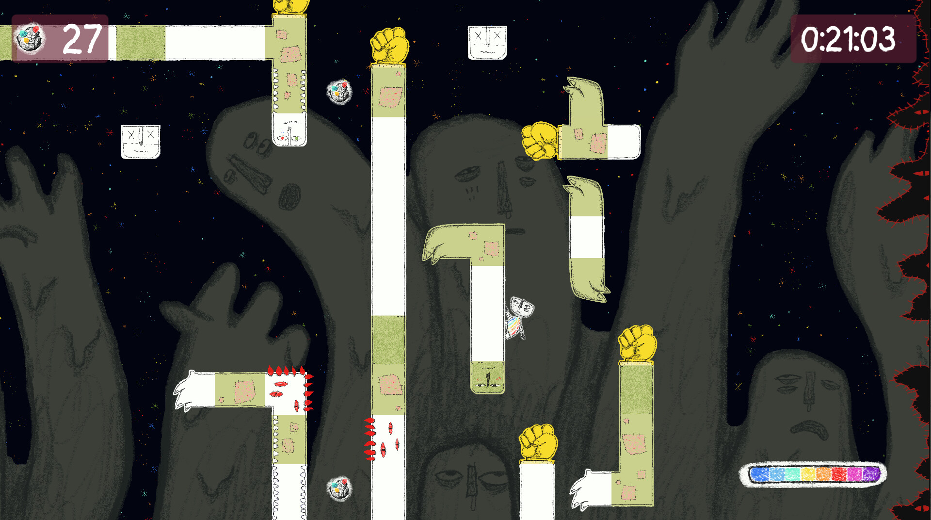 90s-era platforming: Test your skills in a 1-hit-death-quick-respawn platforming adventure in which you must explore, collect... and escape