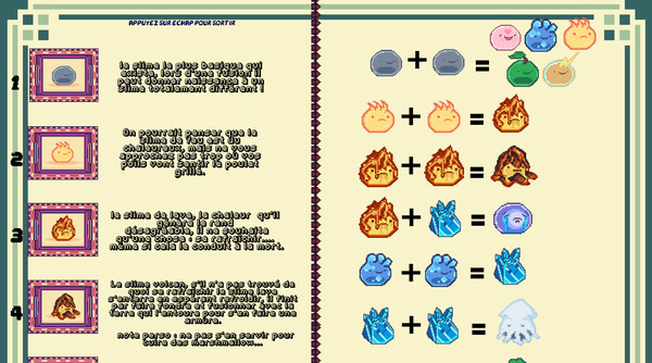 Being a (temporary) manager of a slime farm is not always easy, but it's up to you to prove yourself and try to overcome the chaos generated by a multitude of slimes, each one cuter (almost) than the other. . Discover all the fusions, collect them... And try to be the best (temporary) slime breeder!