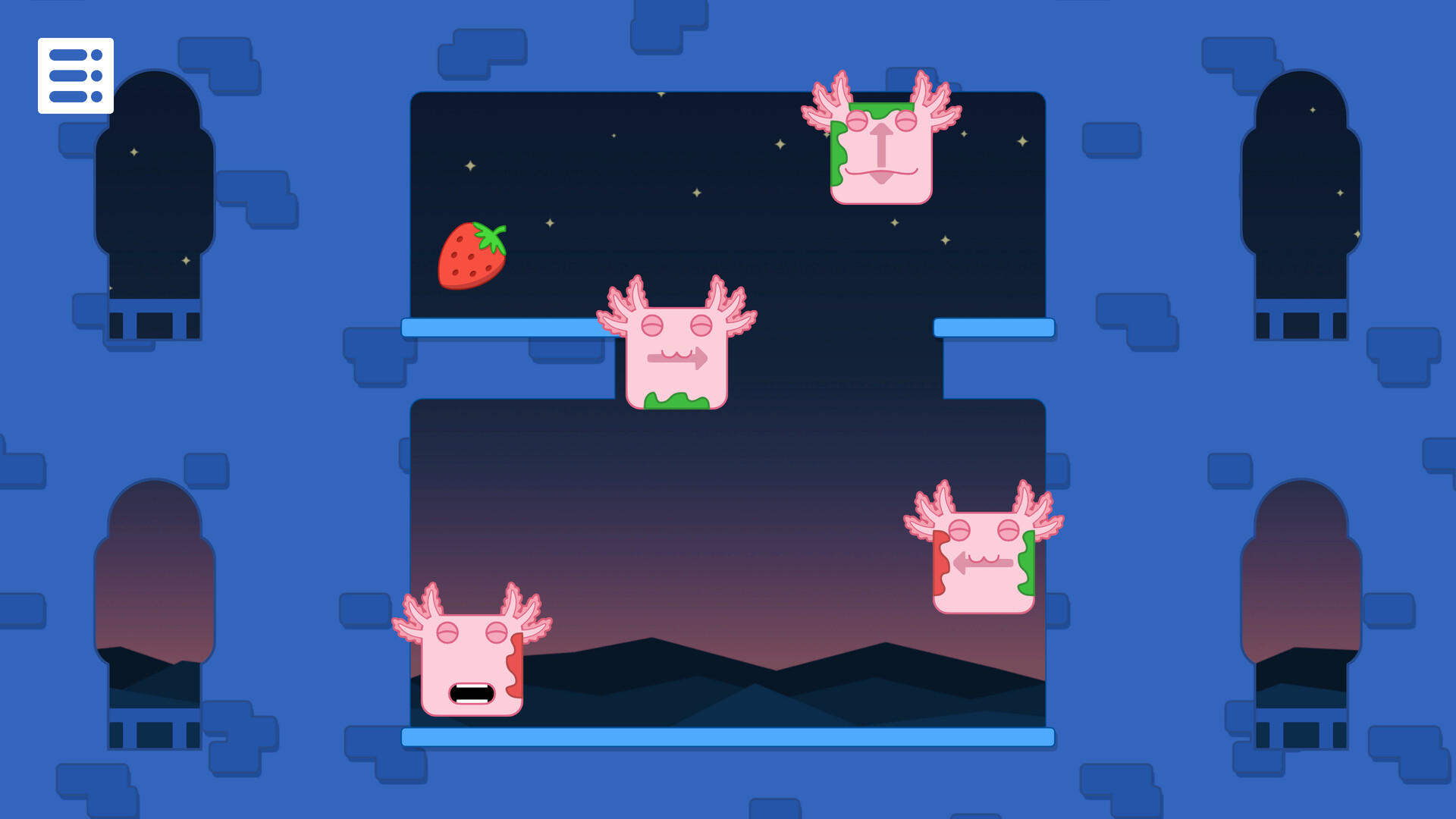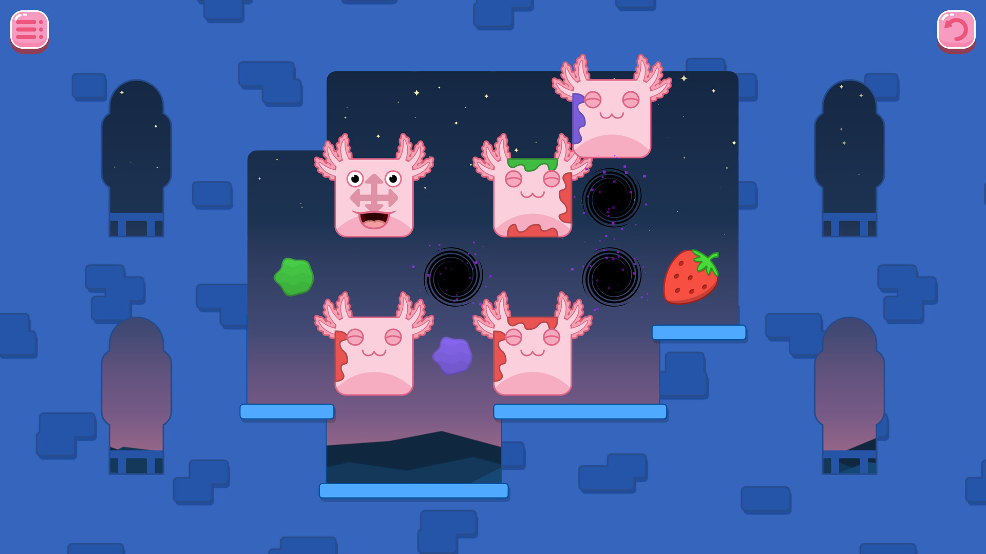 Bloxolotls sind von Natur aus hungrig. Bei jedem R?tsel wirst du aufgefordert, sie mit Obst zu f?ttern. Lecker!