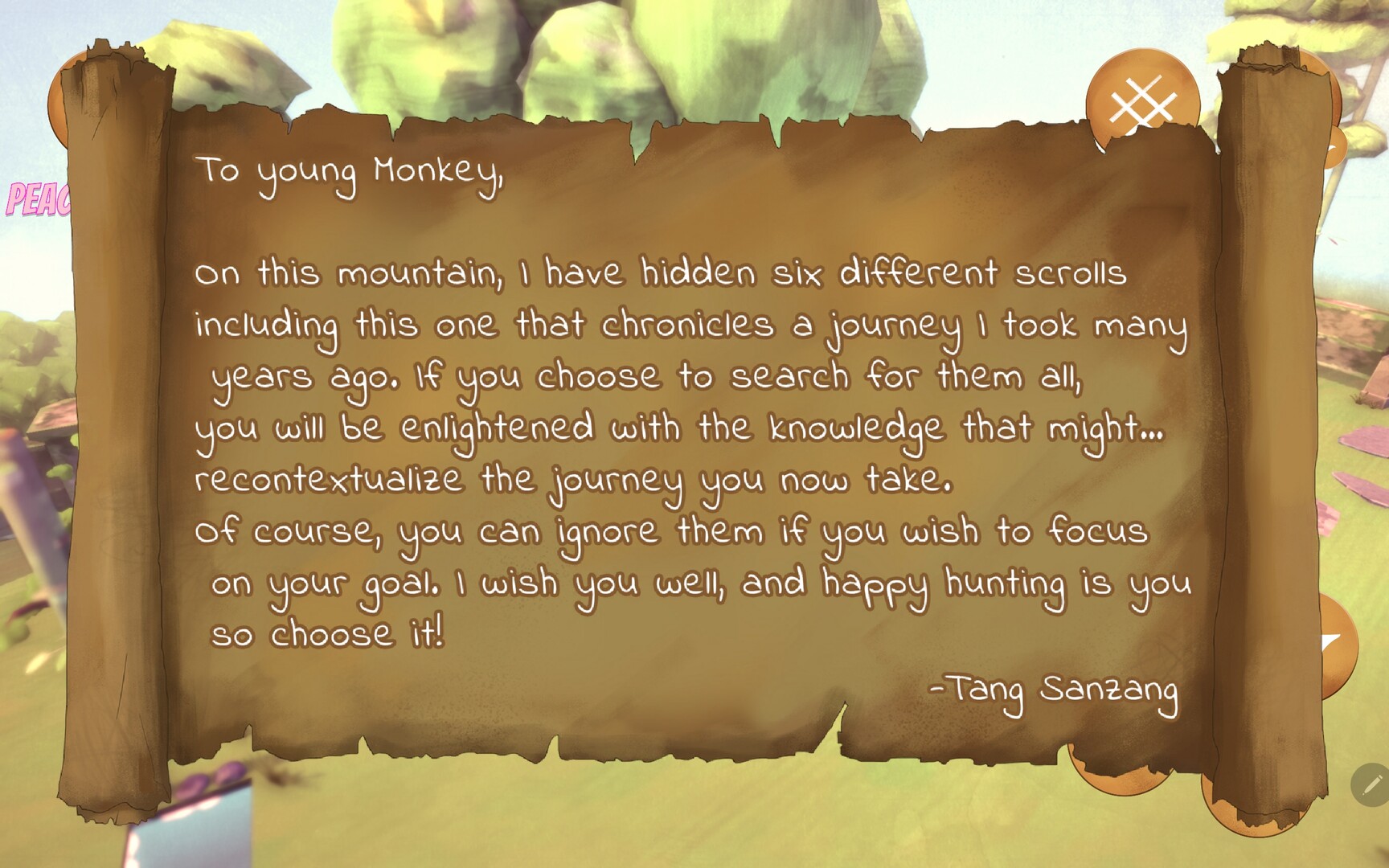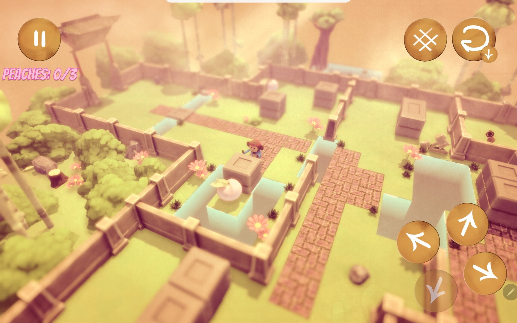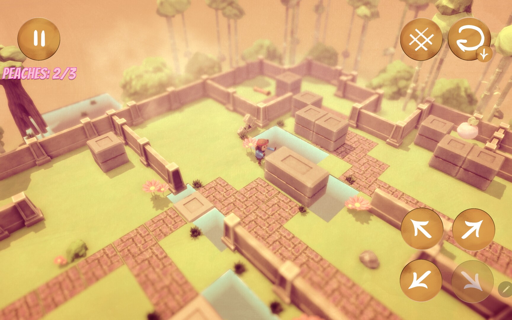 -This game has 7 unique levels. Collect every peach in a level in order to cross the gate into the next one. There's also a secret in each level that are used to piece together a secret story. Can you collect them all?