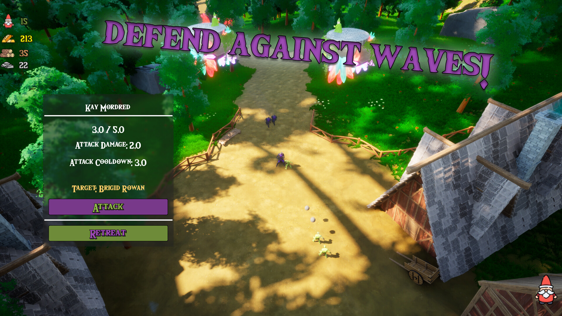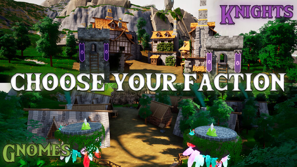 Knightly Gnomes is a Top-Down Strategy game where you choose to play as either the leader of the Knights or Gnomes and control troops in order to fight the enemy faction.