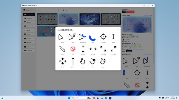 Mouse Pointer Engine is an open creative studio led mouse pointer switching software that can be installed and replaced with a large number of pointers with just a click! You can also preview and upload mouse pointers, and publish more beautiful and useful mouse pointers to Steam Creative Workshop, allowing more users to use the mouse pointers you create and publish!