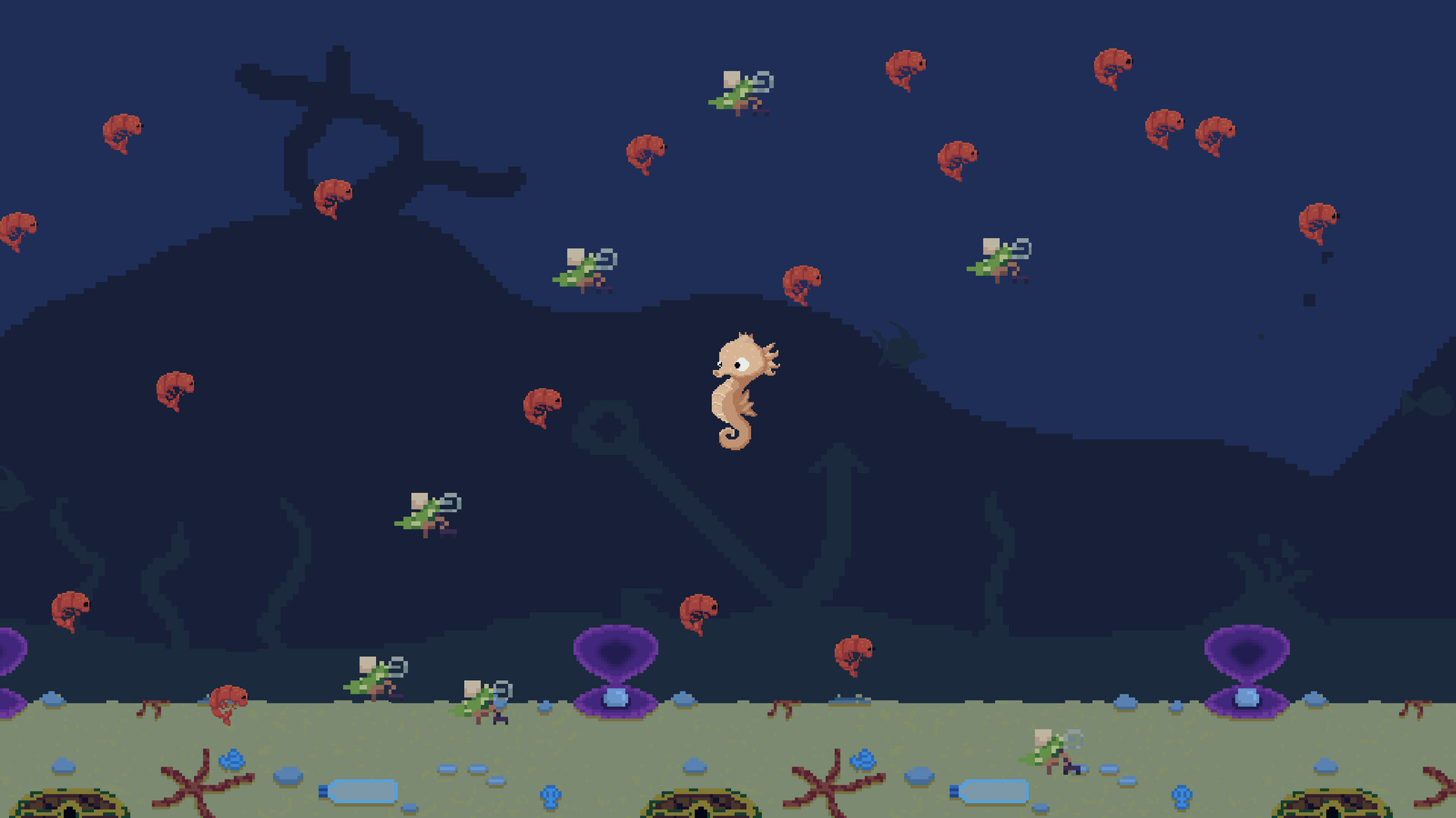 This 2D game is about a seahorse and what it?s like to be one for a day! The protagonist must go through a series of challenges until finding its mate, each being totally different. The game also features real information about marine life along with light humor to make everything more fun. Could you be a seahorse? Find out with Ziggy. In this underwater adventure, which consists of a sort of obstacle race to reach the protagonist?s main goal, you will discover more about the life of a seahorse!