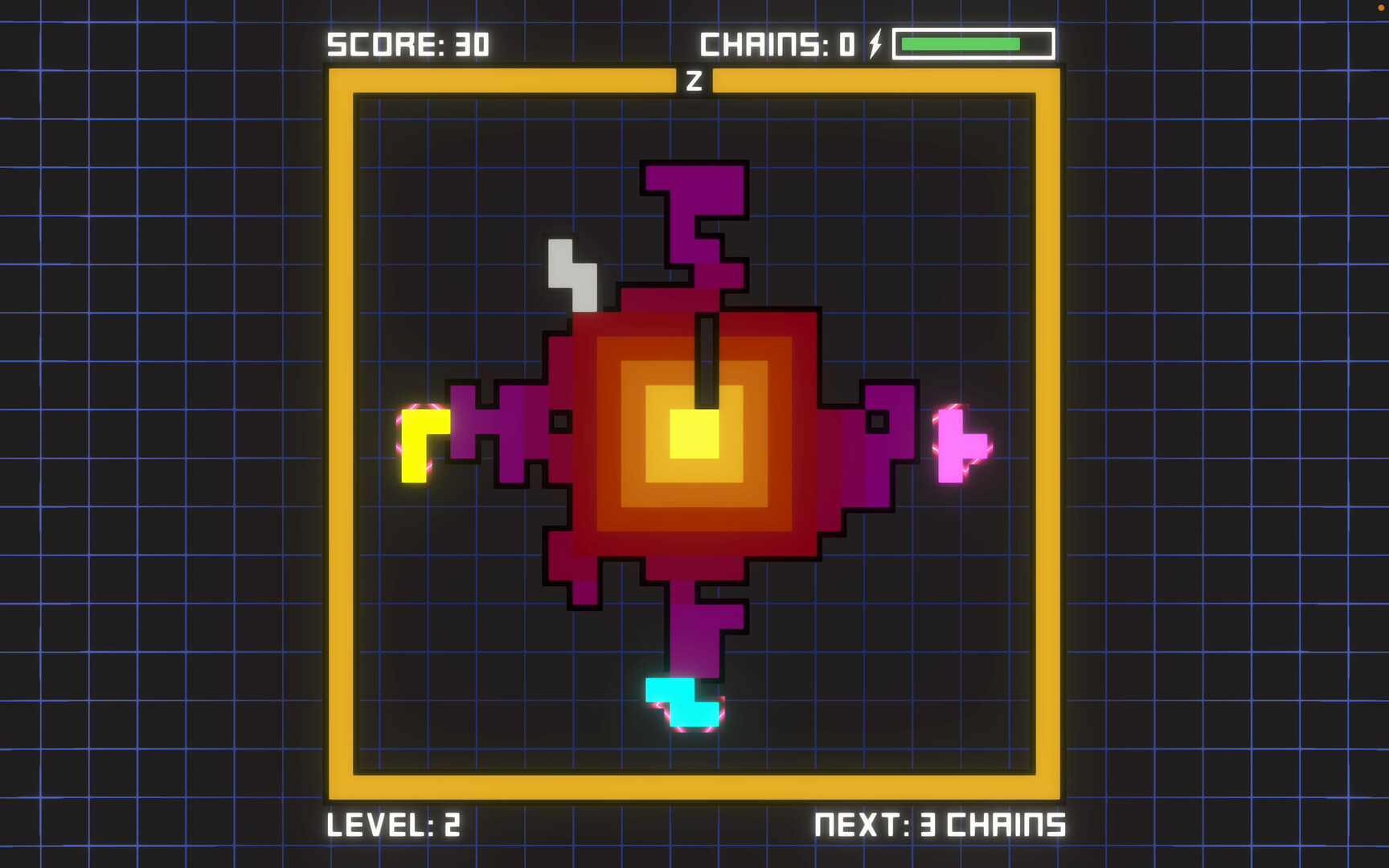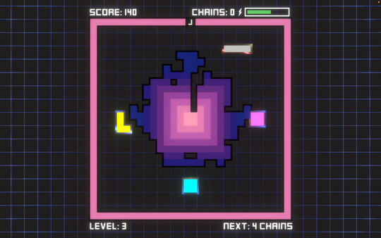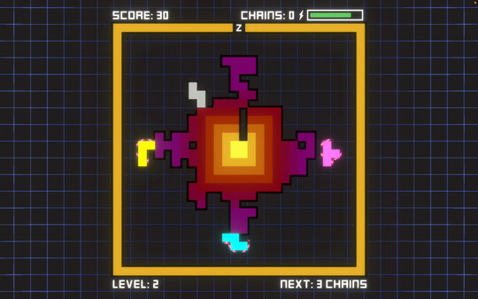Combines classic tetromino gameplay with chains and combos.