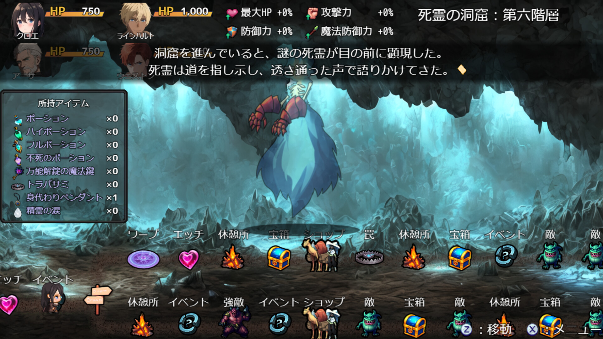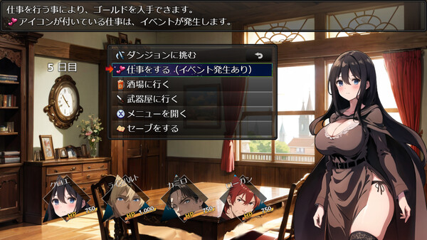 Players control Chloe as she ventures into the dungeon to save her husband. Progressing through randomly generated dungeons, players select destinations while encountering events, treasure chests, and formidable enemies.Combat is turn-based command battles. Enemies will assault Chloe, but even her allies have their eyes on her.