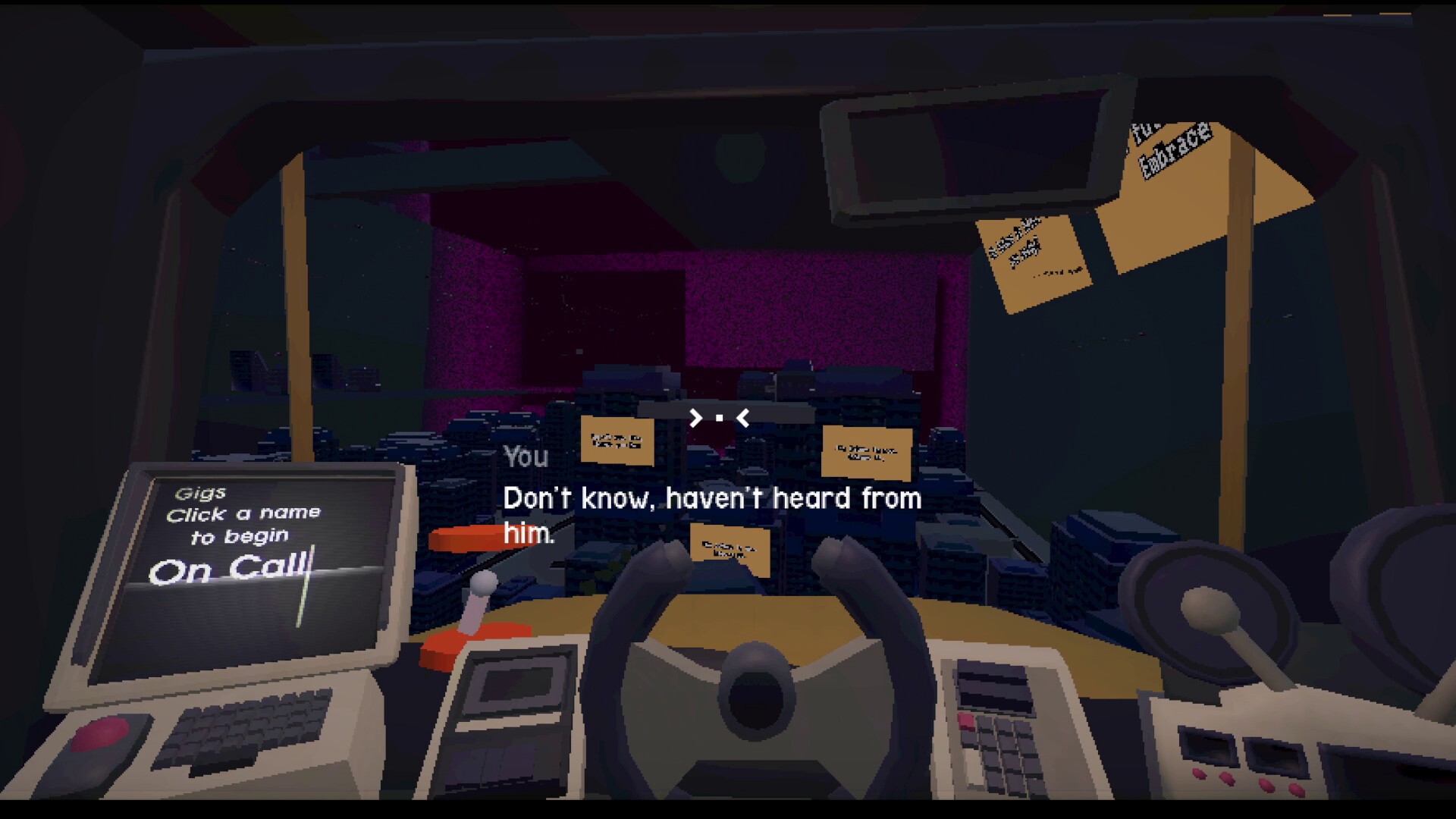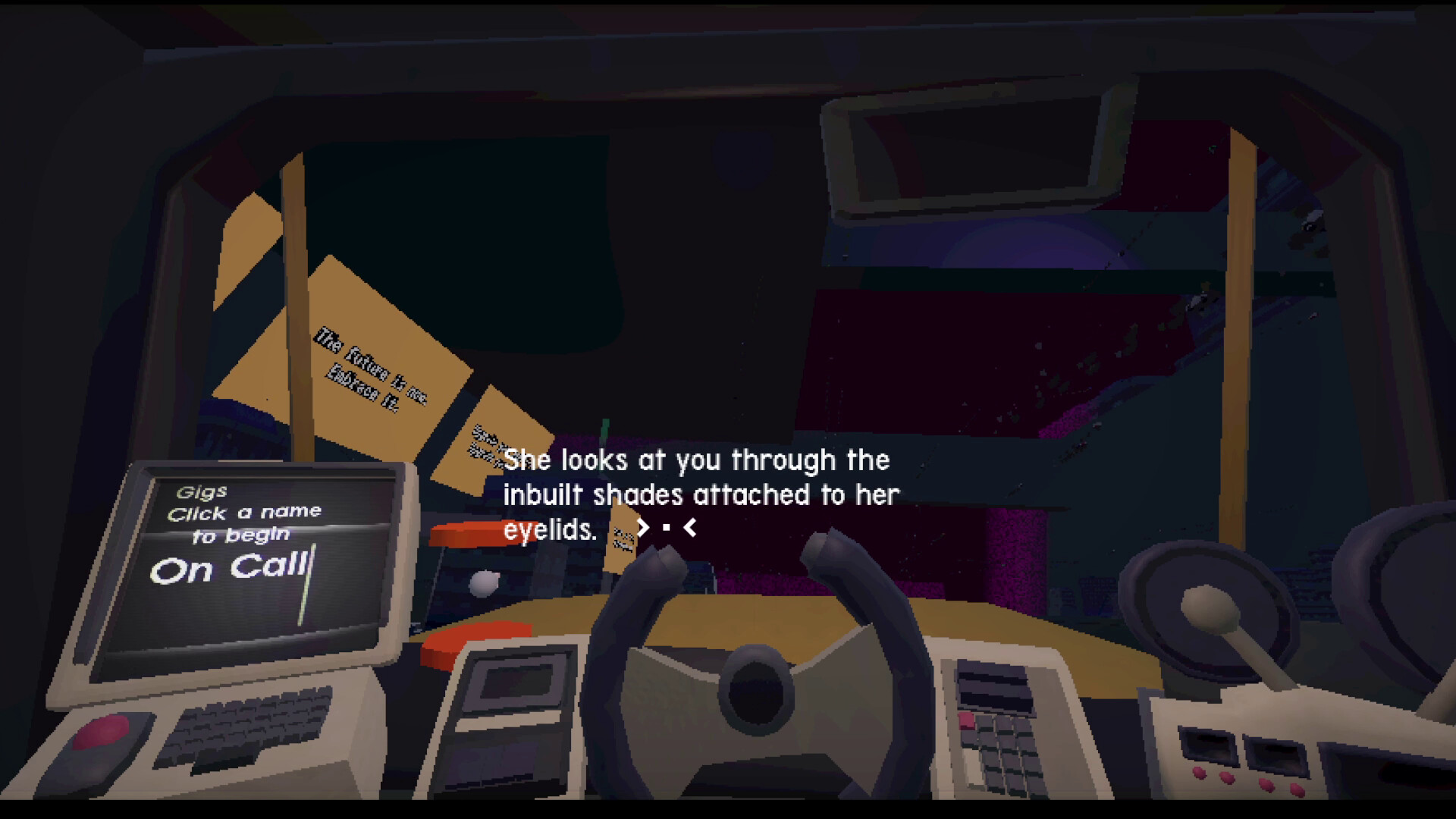 Take the helm in this cyberpunk uber driver narrative mystery. Traverse the city delivering contraband and nefarious passengers. Rekindle old contacts and reconnect with an underworld you were trying to leave behind.