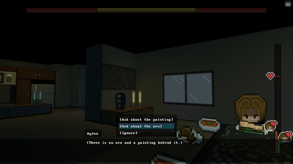 Captive: You Are My Idol is a fictional game where the player is kidnapped by their biggest fan with the delusion of them belonging together. During the day, Aylen is encouraged to play his game, and during the evening, she is brought upstairs to enjoy his home-cooked dinners. However, these dinners are the most critical moments for Aylen. Will you, as Aylen, decide to investigate your surroundings and plot your escape? Or will you attempt to deceive your kidnapper with your words? Then again, there's always the third option, where the first two never had a chance to start.