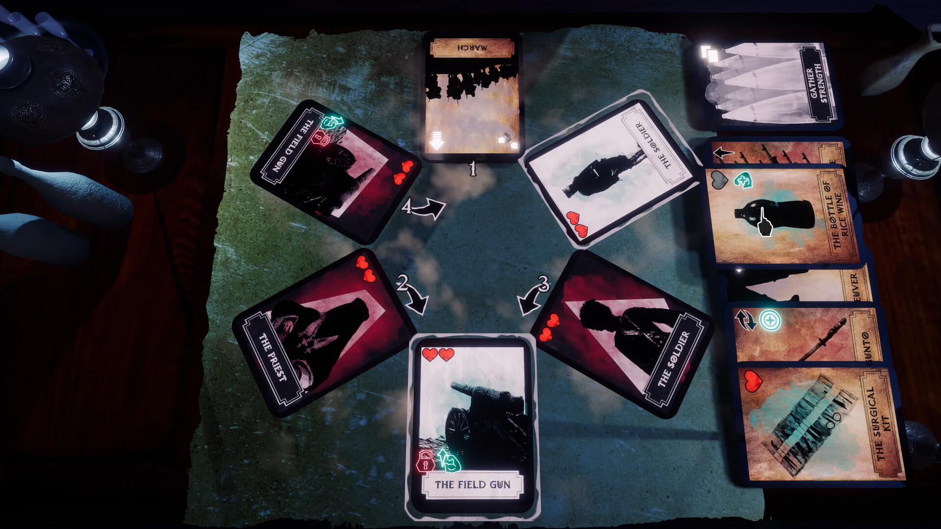 In Sonsgorod, the game board is circular, and what you can do depends on where you are. Attacking often isn't the best play, but by swapping and moving cards, you can set up maneuvers, turn enemies against one another and emerge victorious.