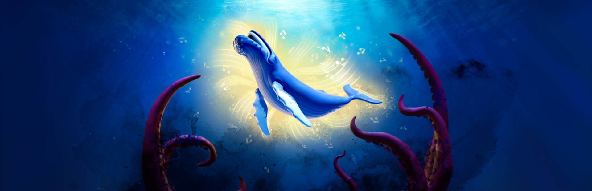 Use whale songs to restore corrupted ocean environments scarred by the Leviathan, open blocked pathways, and solve musical puzzles.