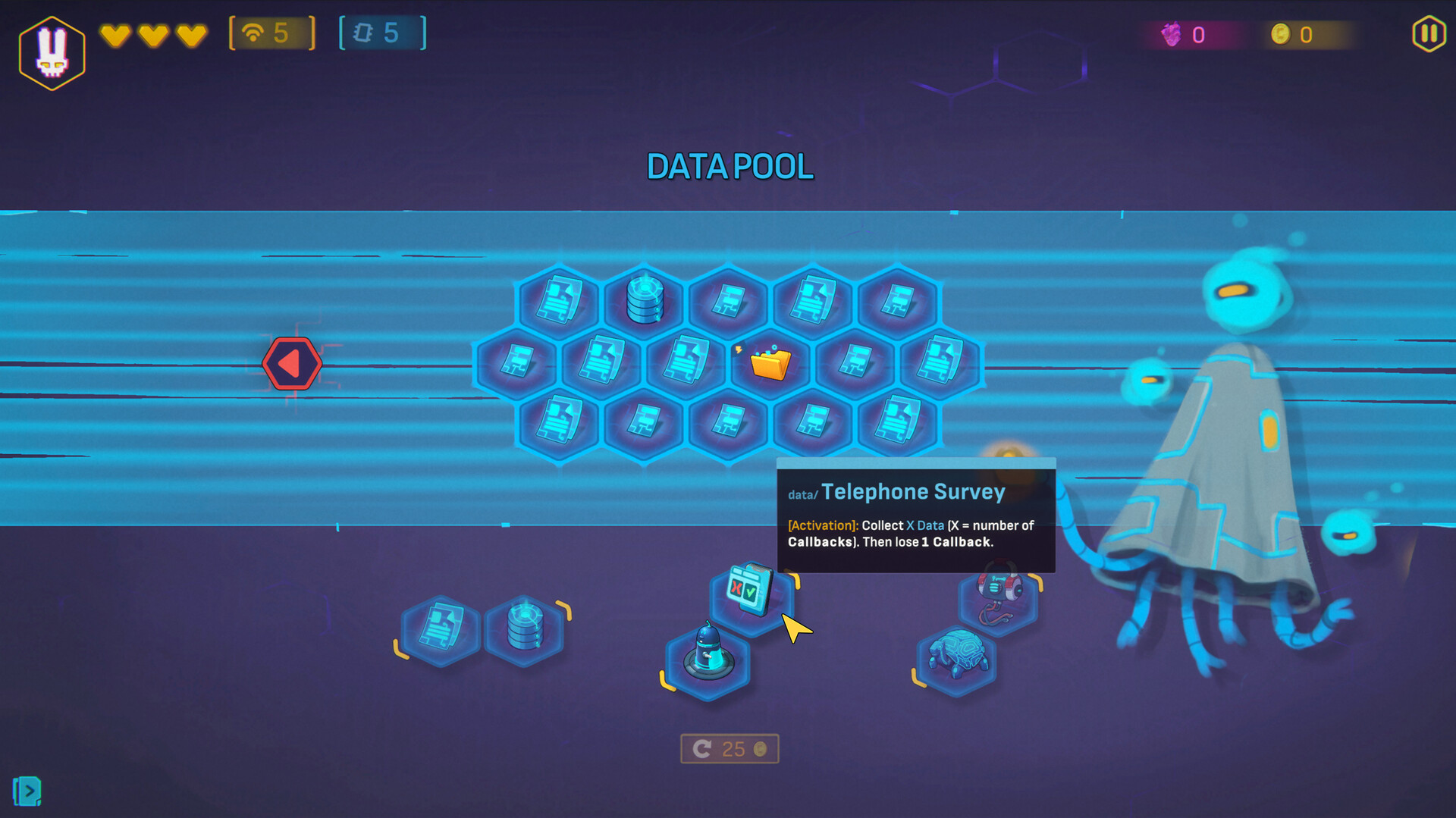 NET.CRAWL ist ein Mix aus Deckbuilder, Puzzler und Roguelike auf einem hexagonalen Raster. Sobald du ein Spielfeld betrittst, wird es aktiviert und l?st seinen Effekt aus.