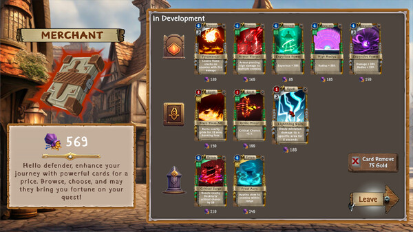 W?hrend du erfolgreich verteidigst, verdiene Sch?tze und treffe auf H?ndler, um dein Deck zu st?rken und dein Schicksal zu gestalten. Die richtigen Karten sind entscheidend f?r deinen Sieg.