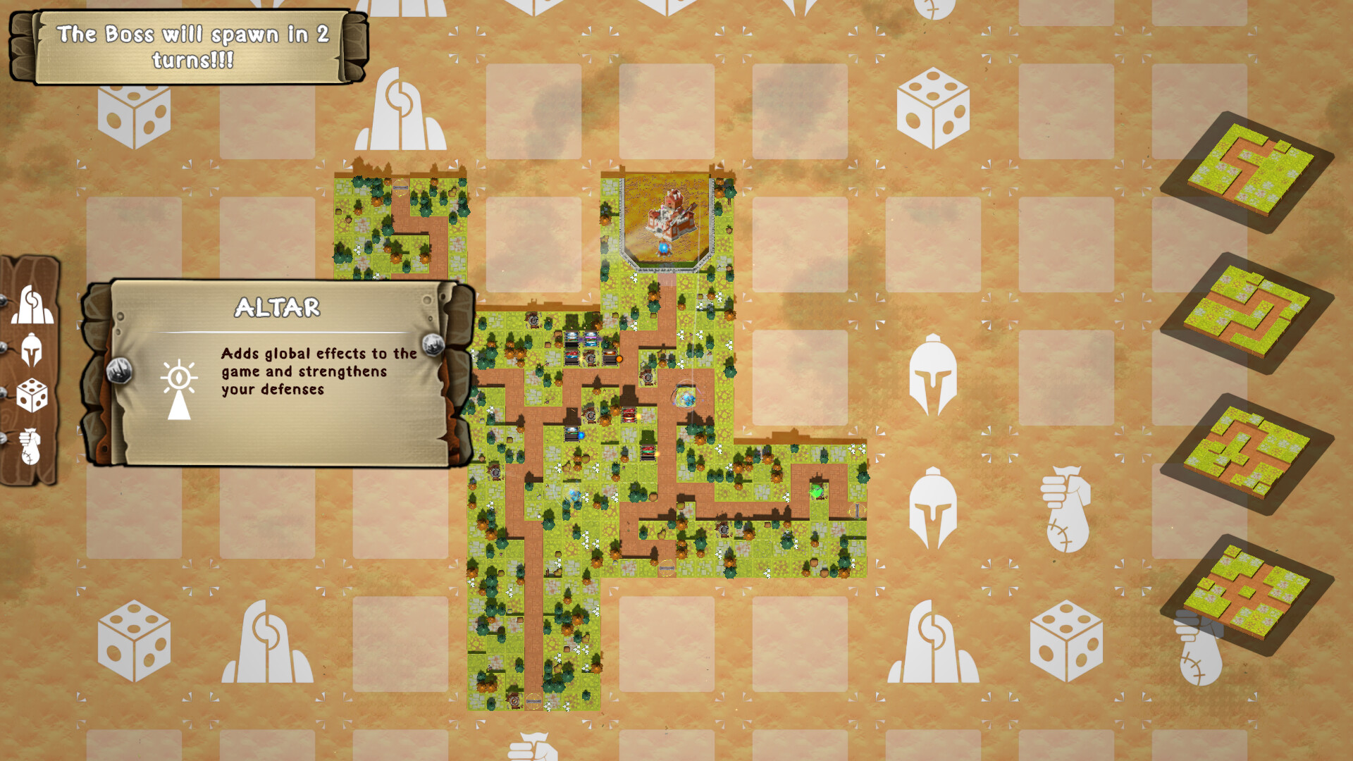 In diesem Spiel mit 3 Akten baust du einen strategischen Weg, der dir verschiedene Boni einbringt, bis du den Boss des Aktes 3 besiegst und deine Verteidigung erfolgreich abschlie?t. Nach jedem Akt tr?gst du die Boni, die du erhalten hast, in die n?chste Phase vor. Neben den von Blocken bereitgestellten Strukturen, vergesse nicht, Totem-Karten zu verwenden, um n?tzliche Geb?ude zu errichten.