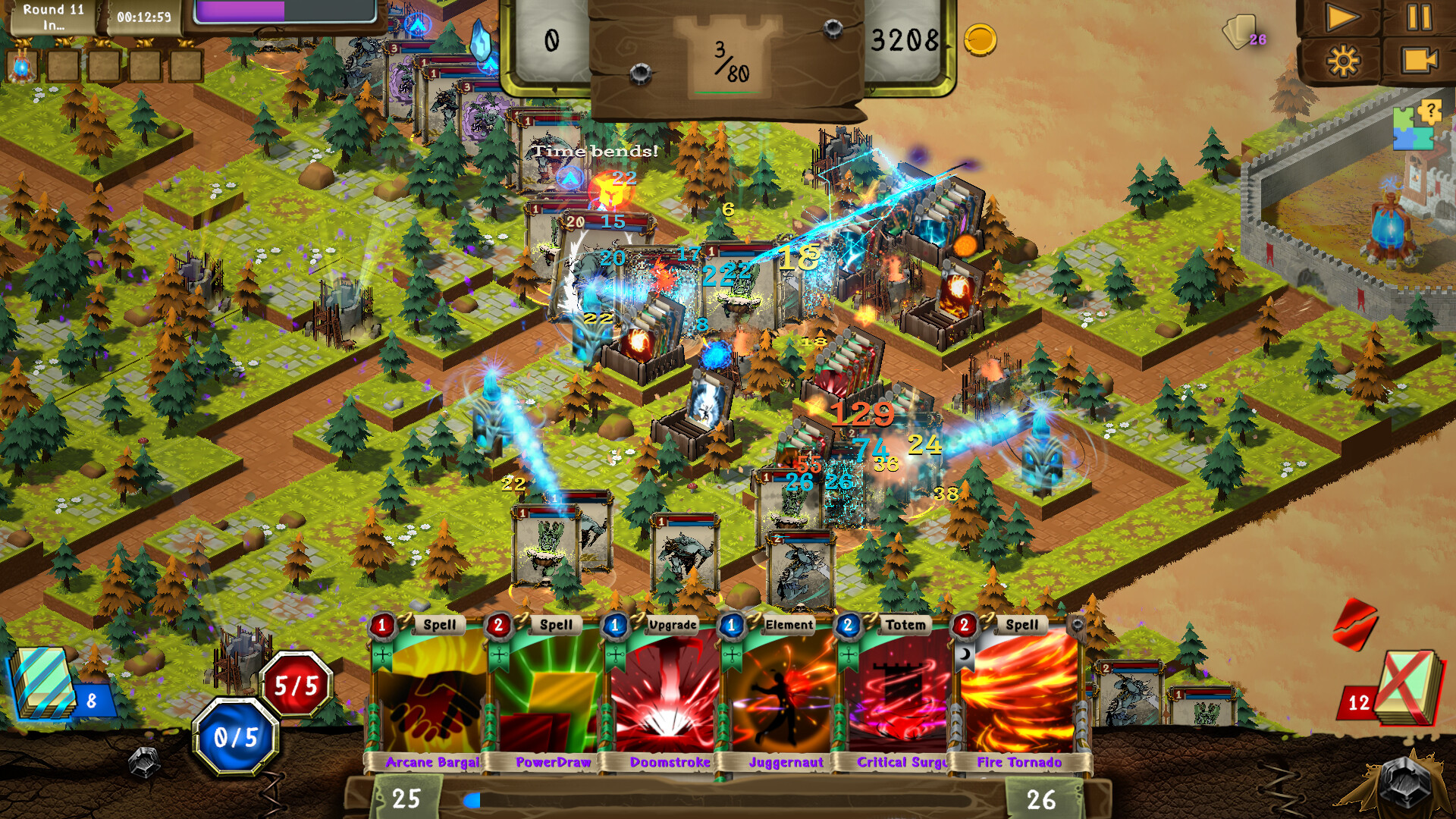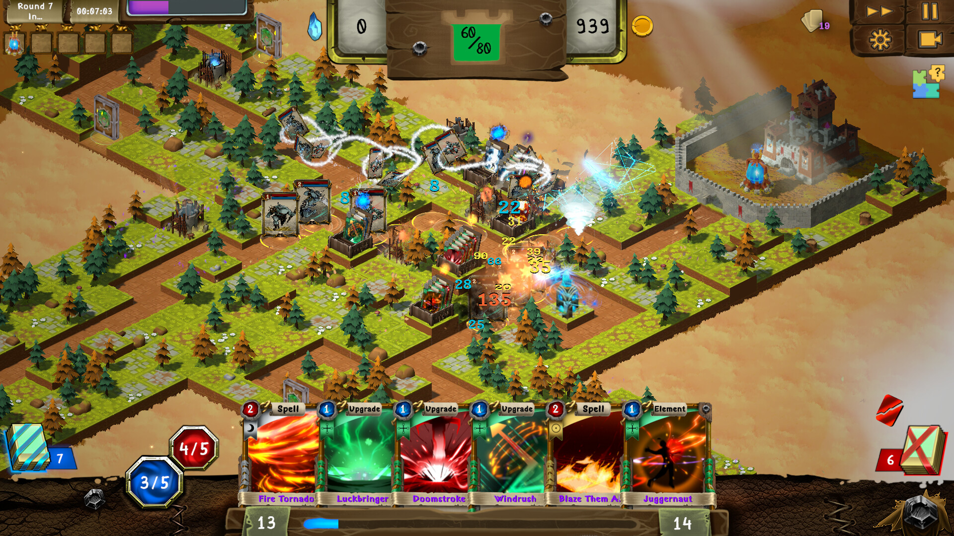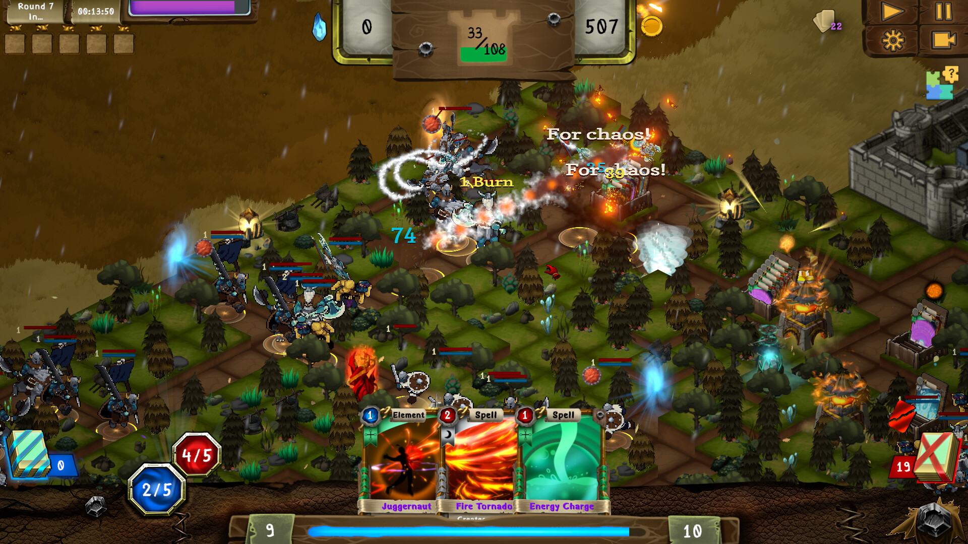 Konstruiere Deckforts mit Elementkarten, um deine Verteidigungslinie aufzubauen. Vergiss nicht, deine Elementkarten mit Upgrade-Karten und m?glichen Kombi-Synergien zu stapeln. Wenn du deine Karten stapelst, werden deine Deckforts st?rker.