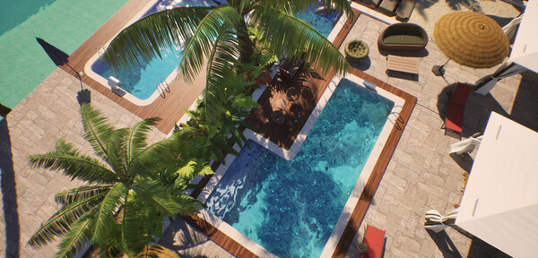 Mit dem Morgengrauen begr??e den azurblauen Himmel und tauche in den zweiten Pool ein. Ein Flugzeug eilt seinem Ziel entgegen, aber f?r dich besteht kein Grund zur Eile.