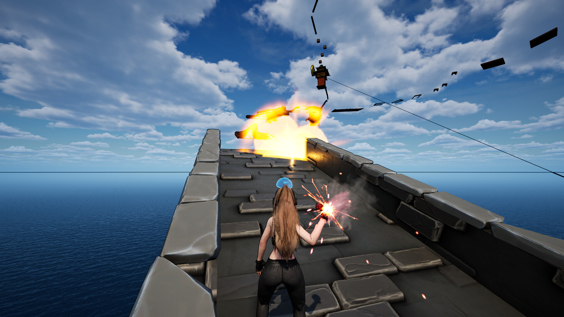 Lache, raste aus, wiederhole? bis du endlich das Luftschiff an der Spitze erreichst.
