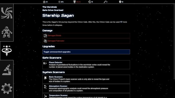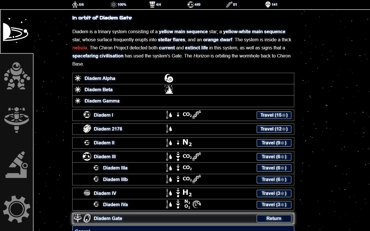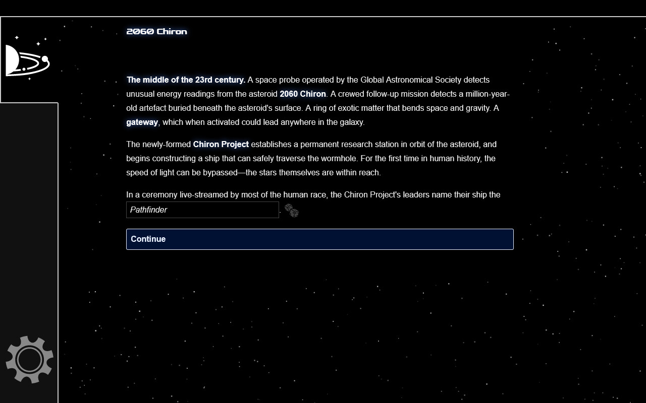 Beyond the Chiron Gate is a text-based space exploration roguelike. Explore an endless universe filled with exotic planets, strange life forms, and ancient civilisations. Manage a crew of space explorers and upgrade their ship with new technology. Brave dangerous worlds to gather the data you need to reach the home system of the mysterious Gatebuilders.FEATURES