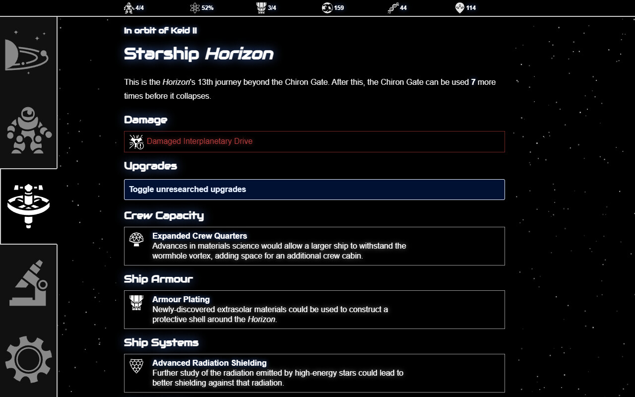 - Dozens of ship upgrades including scanners, defences, crew capacity increases, and new abilities.