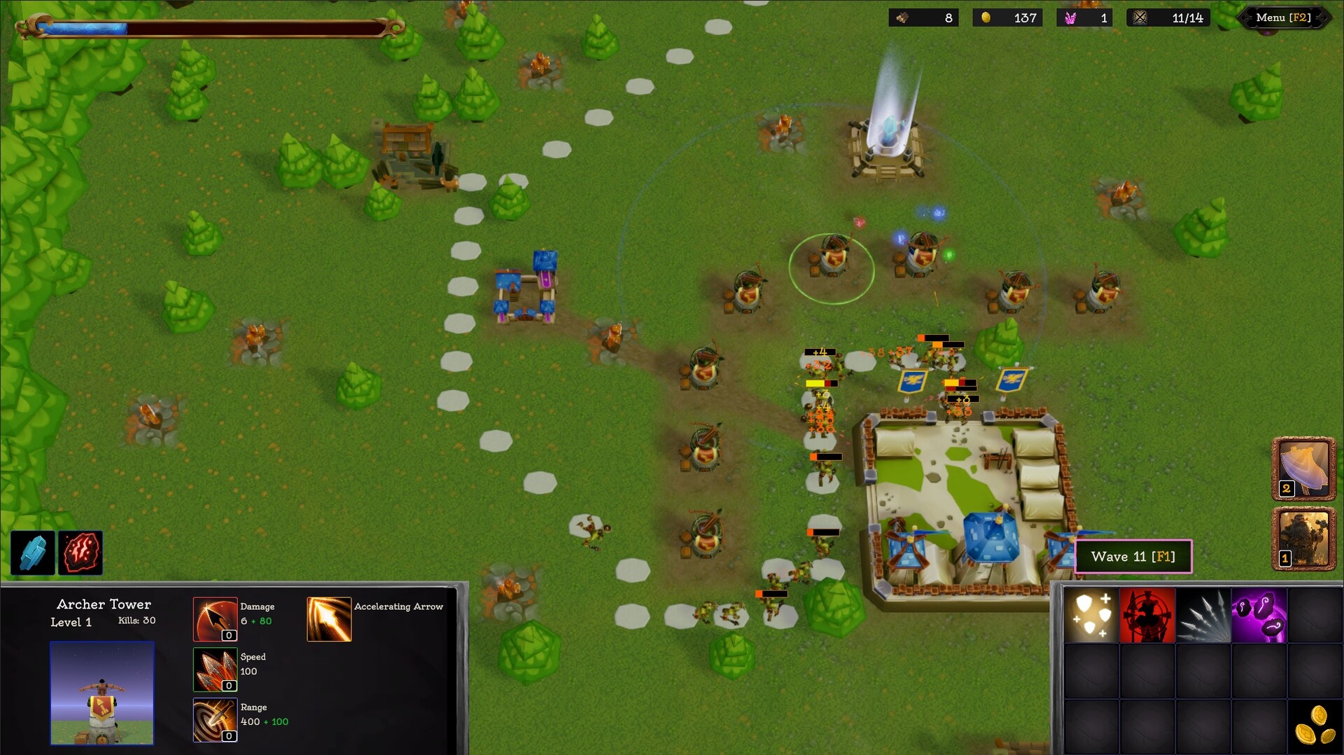 ? Turm-Progression ? T?rme erhalten XP und steigen durch das T?ten von Feinden im Level auf.