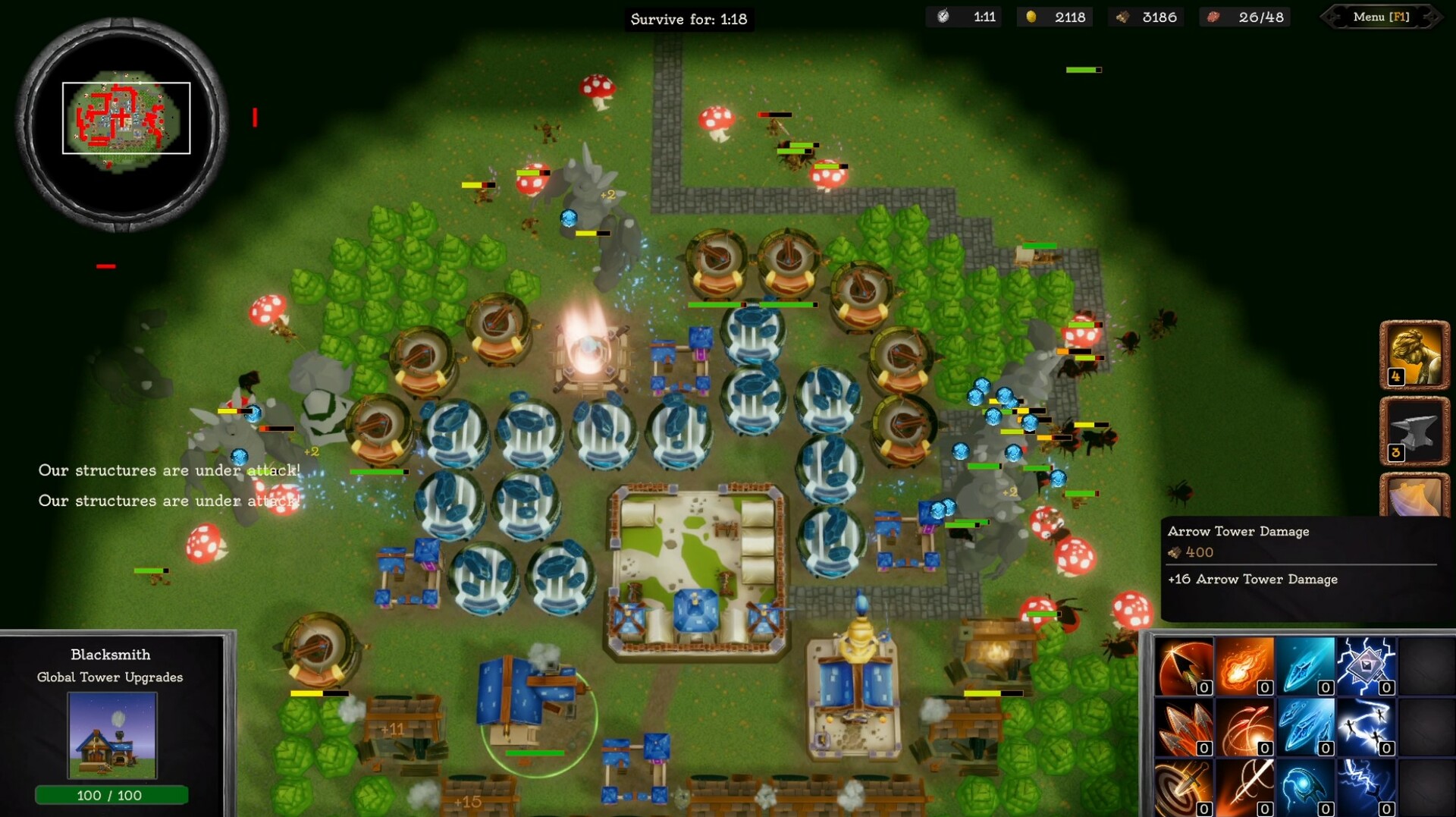 ? Individuelle Upgrades ? F?ge Angriffseffekte pro Turm hinzu und schalte globale Boni frei.