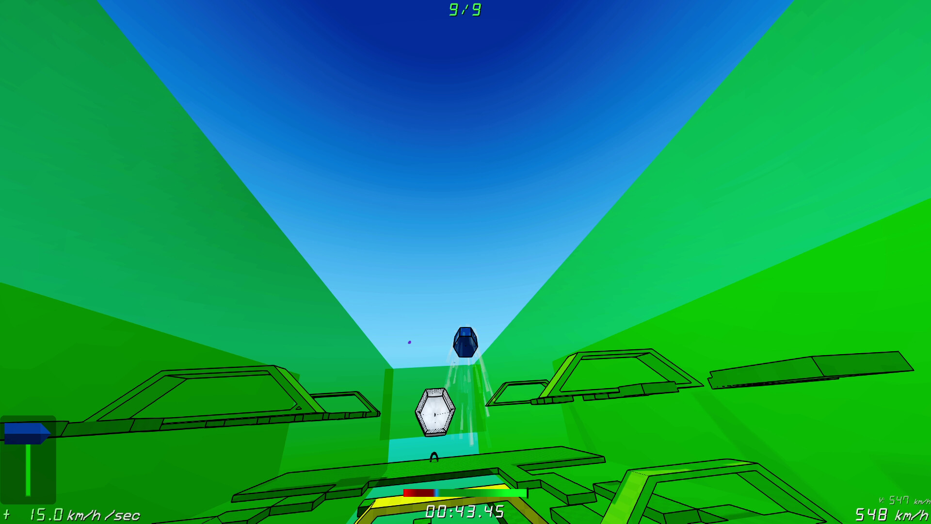 In this minimalistic world made up of basic shapes & vibrant colors, you can get up to speeds of 2,000 km/h! There are levels ranging from Easy to Very Hard difficulty. Some are slower paced with a stronger focus on parkour, routing, and precision, while others are extremely fast paced and will require optimal planning & reaction times to succeed. Level completion should be achievable for most players, but competing for the top may not be for everyone!