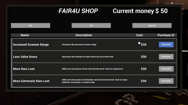 You are an employee of the Department of Collections. You are required to complete tasks in order to progress. Along the way you will find scraps and unique items to help you craft items, very little will be provided to you by DOC. Everything must be earned and we expect compliance. You'll find puzzles along the way you must solve. Diving further will result in new and more difficult challenges, but you must meet the assigned tasks or risk termination. You enter with your team and not all of you are guaranteed to leave. And remember, you are not alone.DOC appreciates your efforts and expects success.