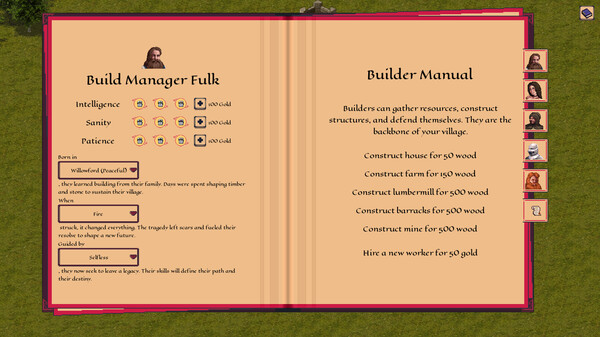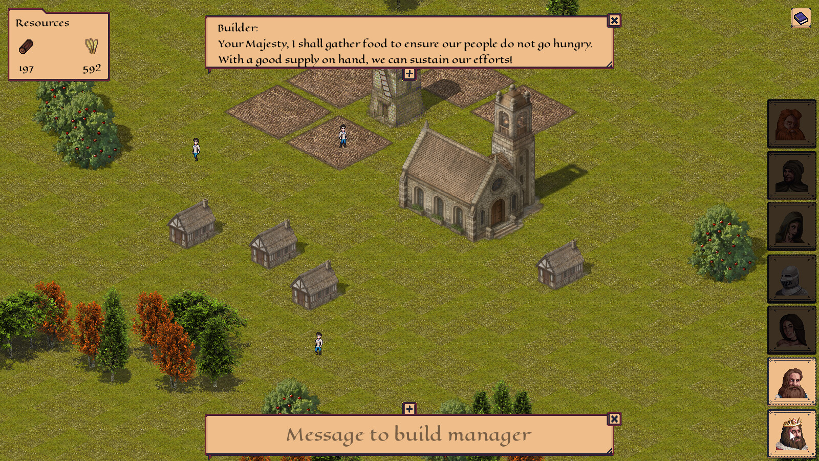 Tell your managers to gather resources, construct structures, or defend the village. You'll at times need to calm your managers as civil war can break out!