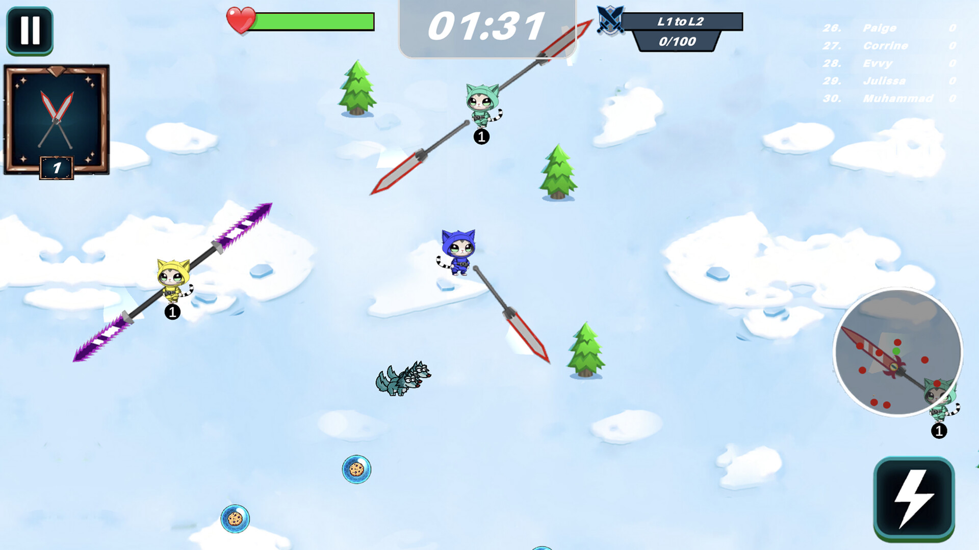 Cat war where you have a cat through which you kill the other cats, kill other cats to earn the points, collect the food items on the map to make your cat stronger. Play vs other cats and avoid getting in contact with the cats with stronger blades. Choose from different cats skins to play, Choose from maps to play and you can choose the blades of the cats too.