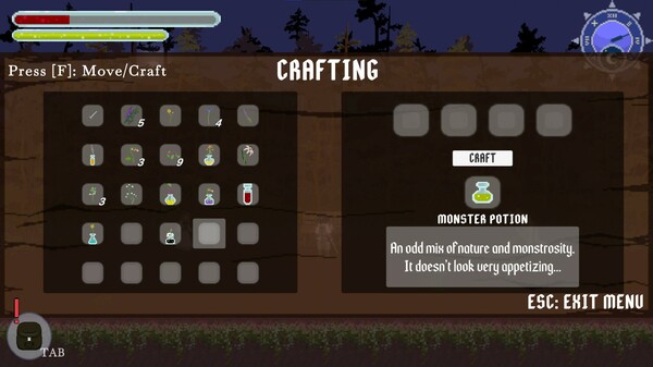 Collect plants and drops from creatures or animals and use them in your recipes. Players can choose to create and upgrade weapons to fight off enemies from a distance, or craft potions to change their abilities for a more direct and effective approach. Be careful, however, as changing yourself too drastically may end in disaster.