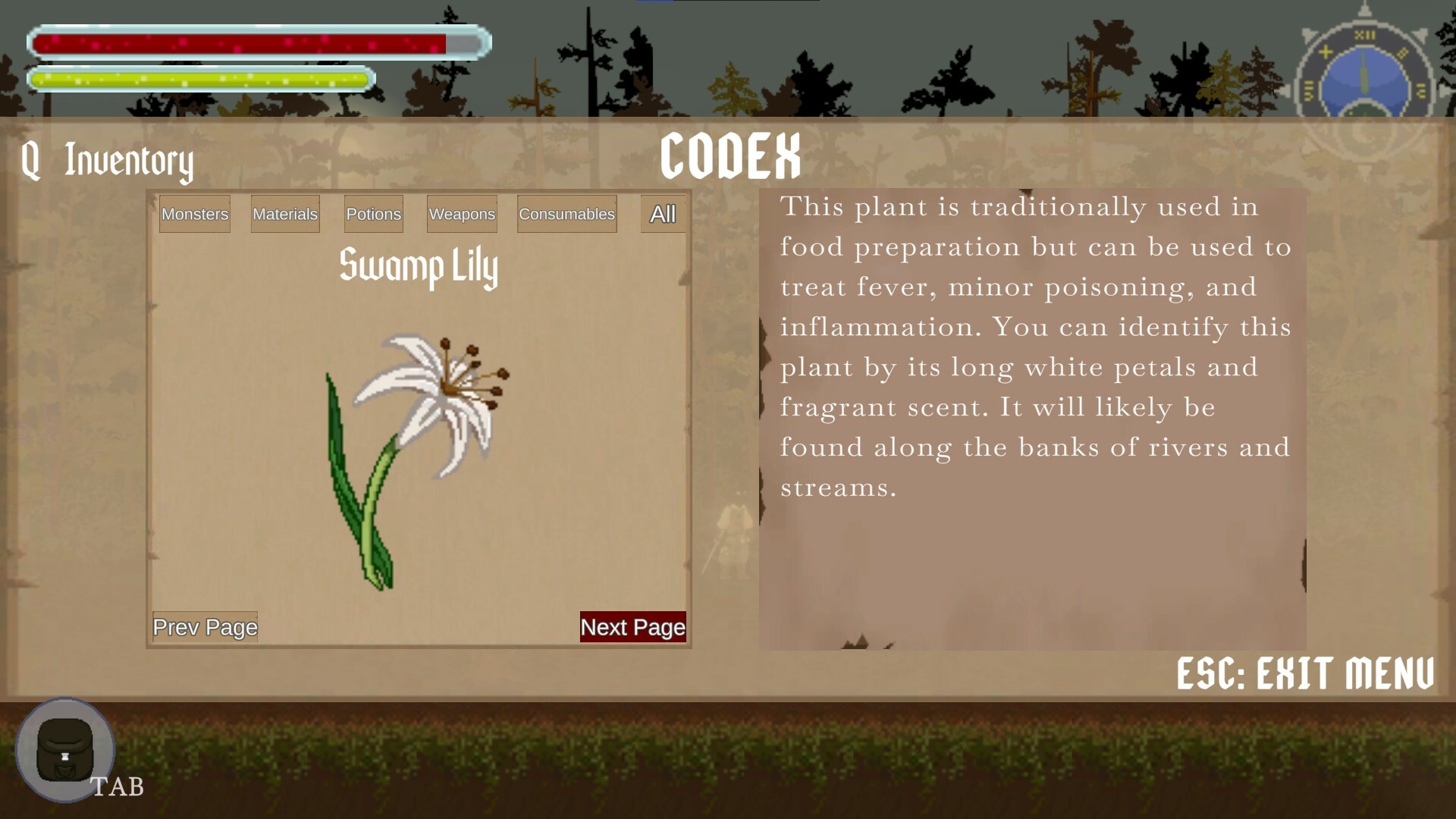 Uncover the lore of the town through pages scattered around the town?s randomly generated landscape. With each new finding, you?ll begin to fill out the codex, which holds everything you?ve learned from creature weaknesses to potion recipes, and even the story you will piece together.
