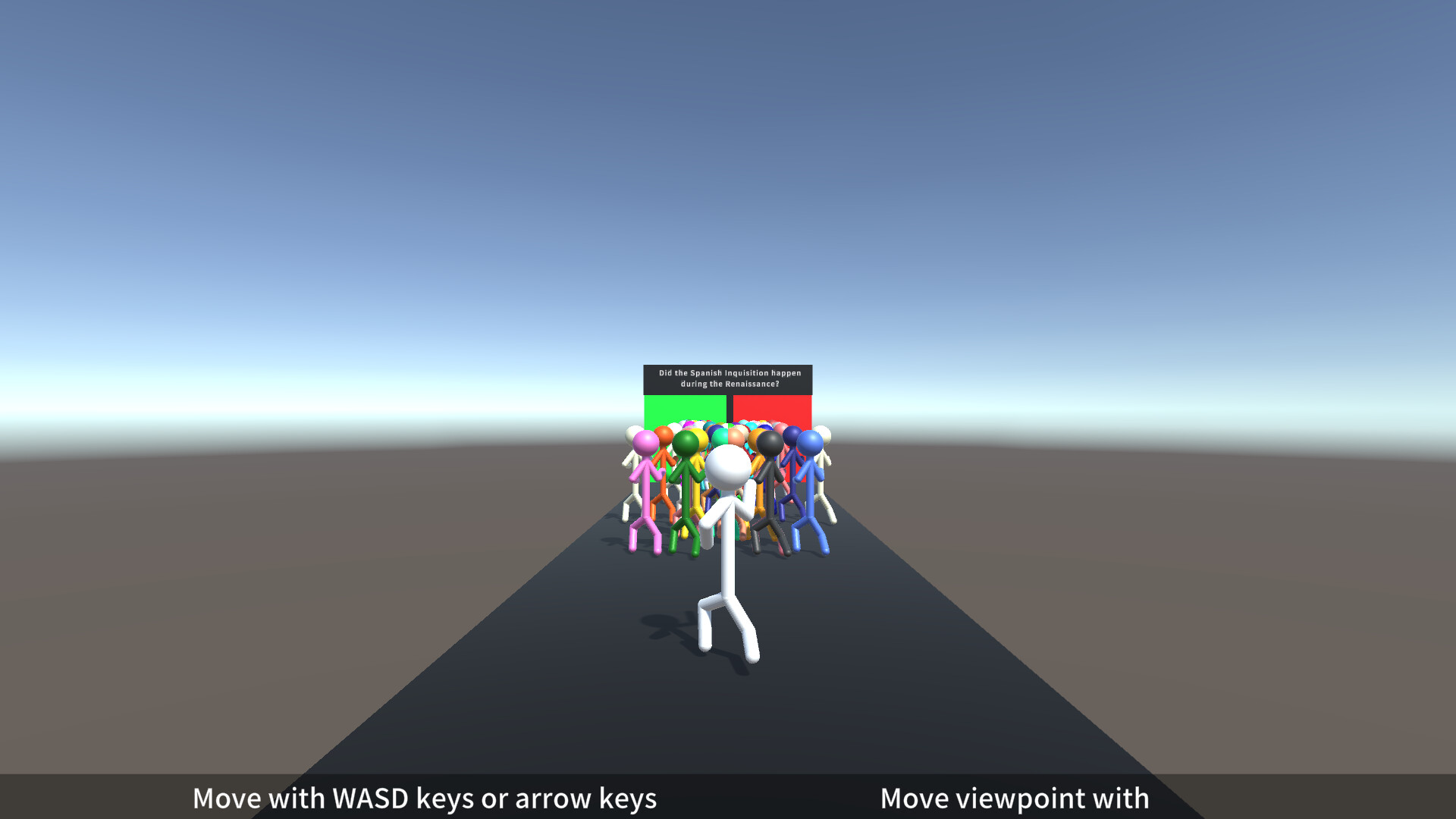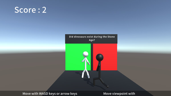 "StickmanQuiz" is a game where players control a stick figure to tackle two-choice quizzes. With three modes and nine challenges, players can test their knowledge across various quizzes. They can also compete against 100 NPC rivals. Aim to clear all challenges!