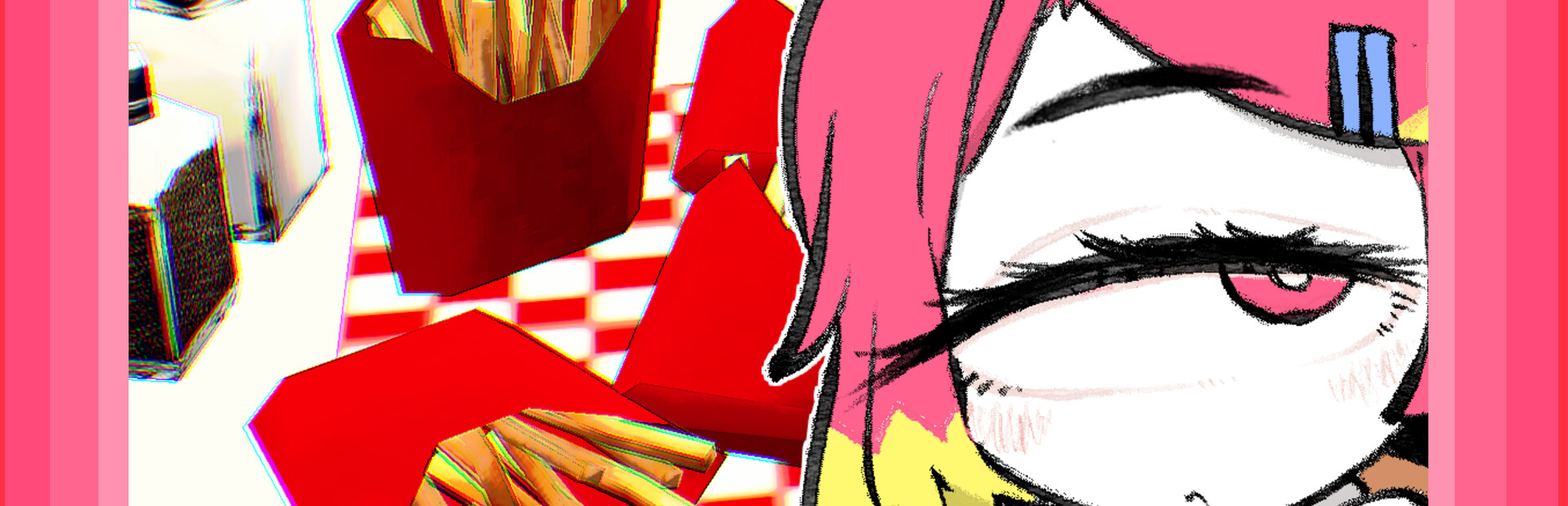 I am showing "it" while eating fries at the store.