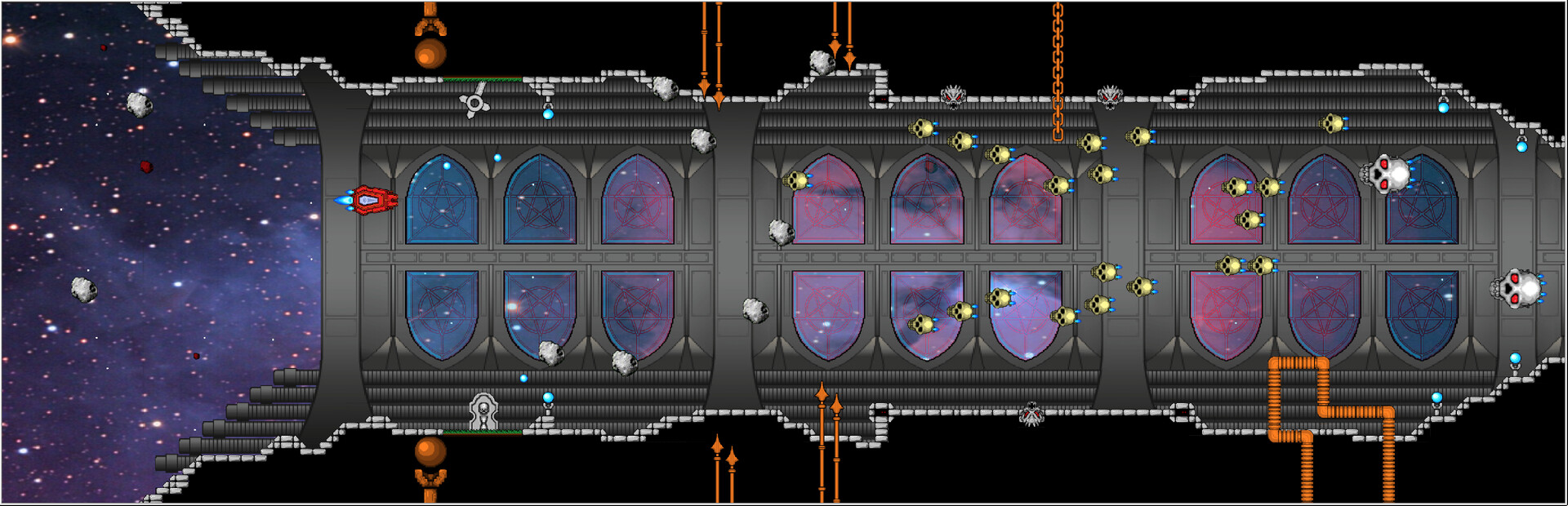 Your eternal rest has been disturbed, so pilot your coffin though 10 galactic churches corrupted by demonic forces.