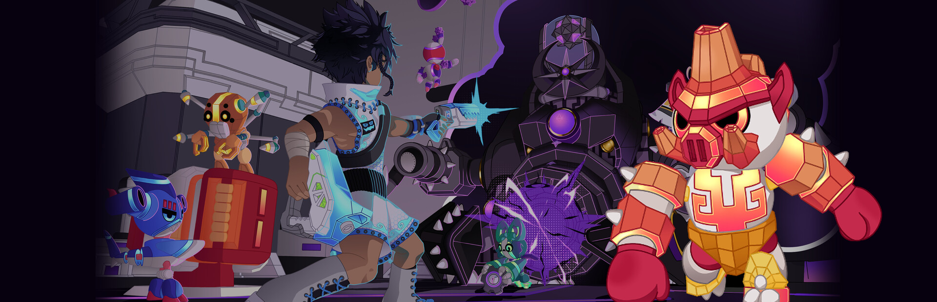 Take up arms and take care of robot buddies in this co-op action roguelite. Hunt giant hostile robots that have stolen the sun to harvest their mechanical parts, upgrade the machinery you can build and strengthen the bond between you and your Nova robot buddies!