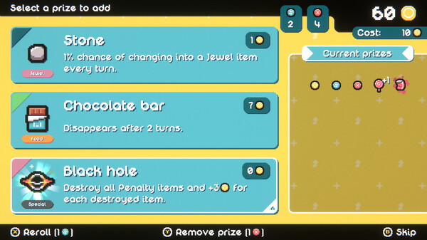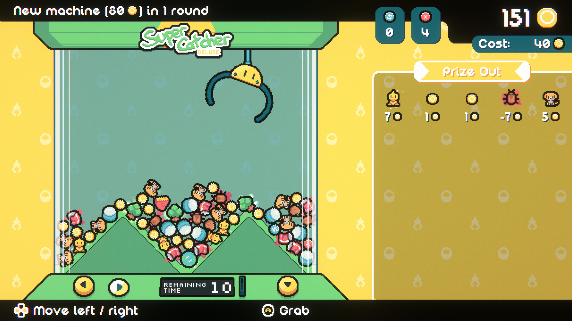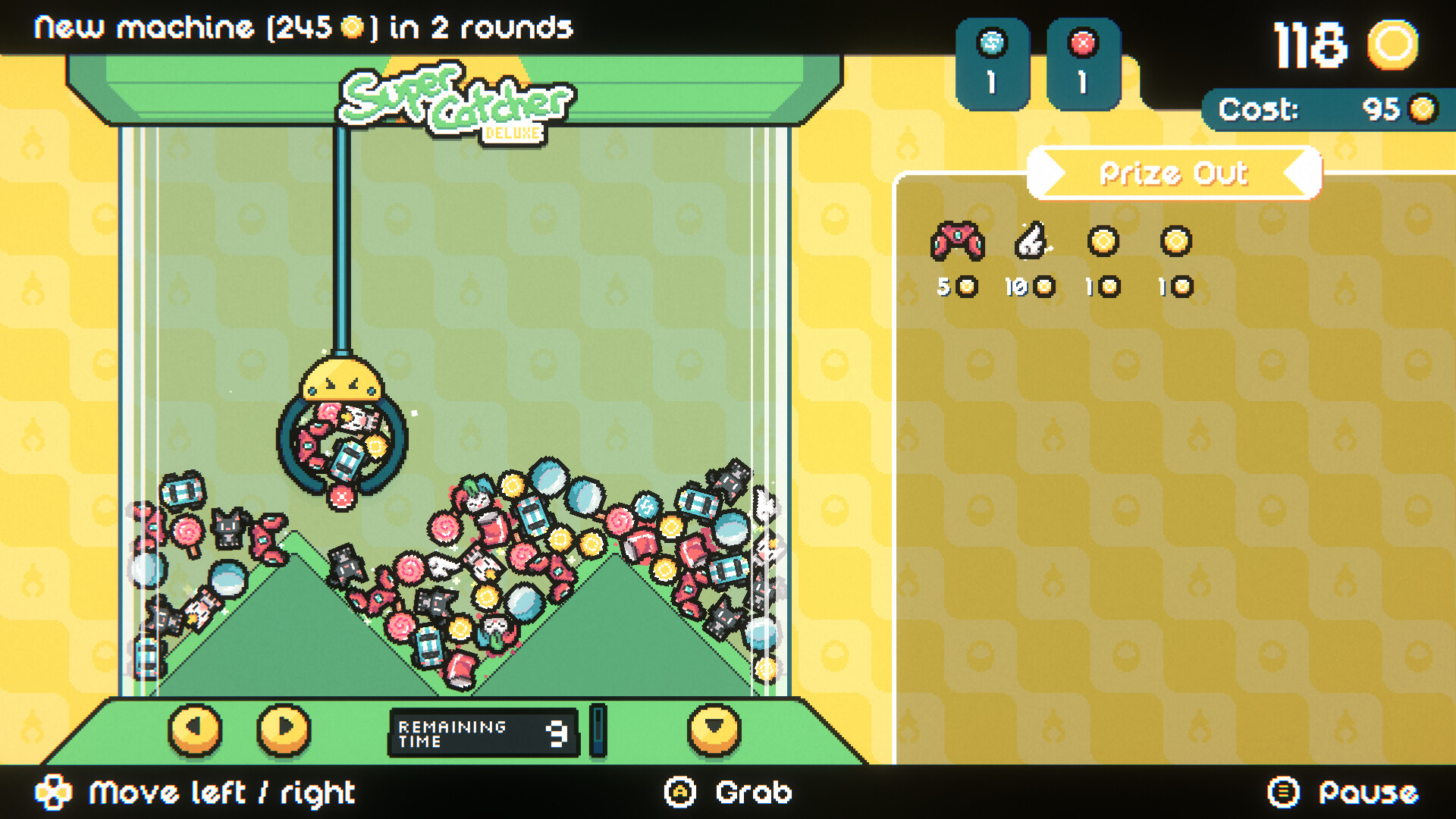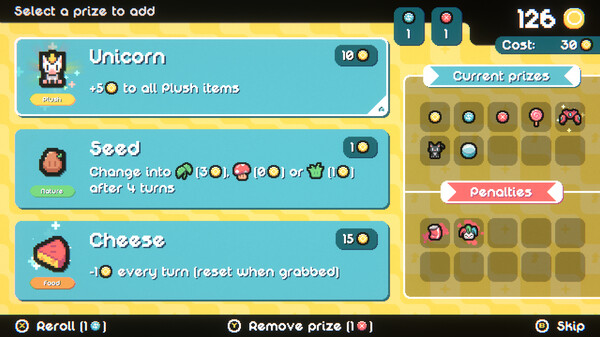 Customize your runs by adding or removing prizes to build powerful combos, and upgrade the claw for greater success!