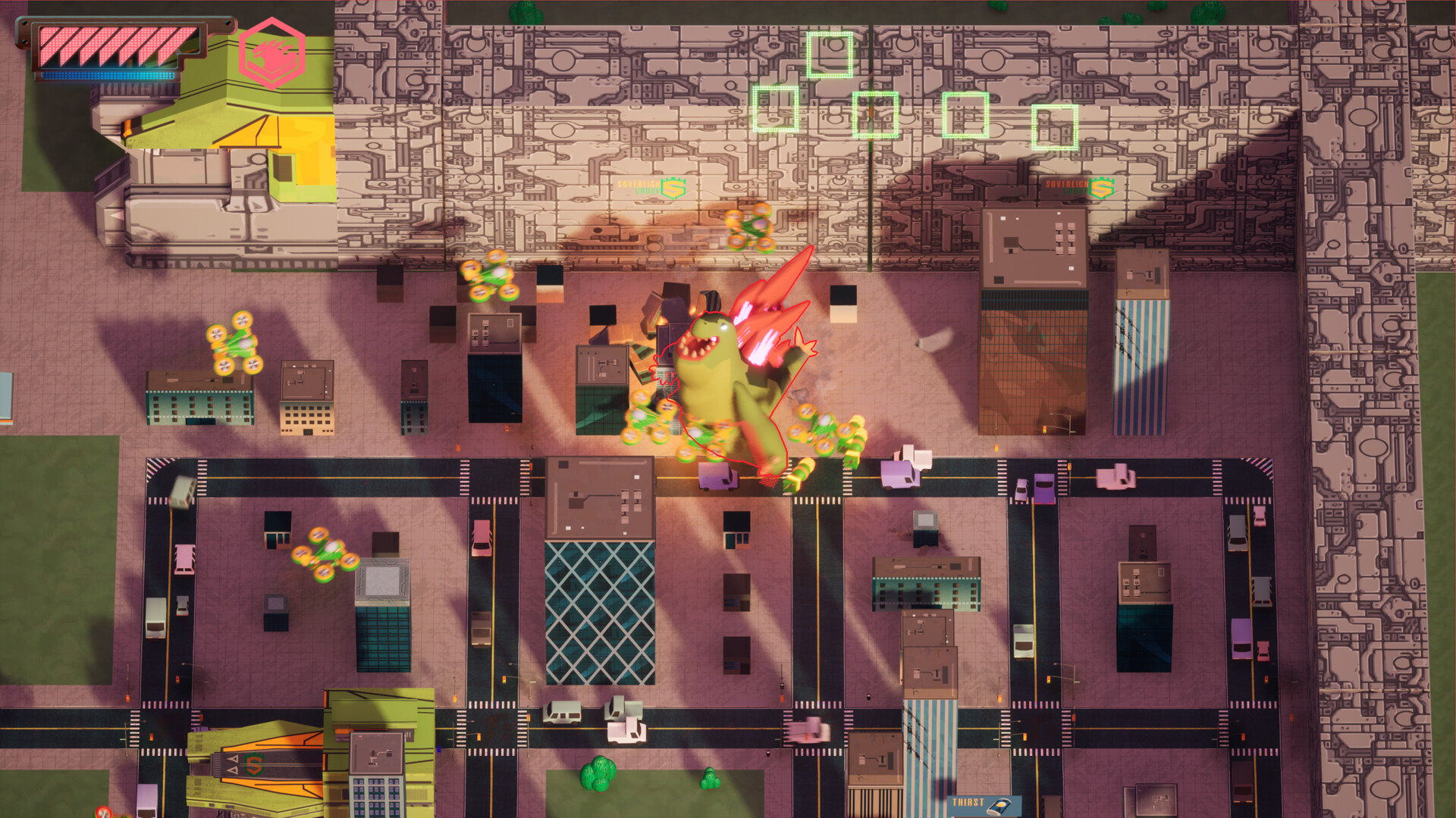 Kaiju Fury Turbo is a top-down, couch co-op, non-stop, action adventure, set in a world where one military technology company has made its mission to defeat, capture, and contain kaiju. As a kaiju, battle your way out from under military control, destroy defense hardened cities, defeat captured kaiju, and become the cataclysm they always feared.