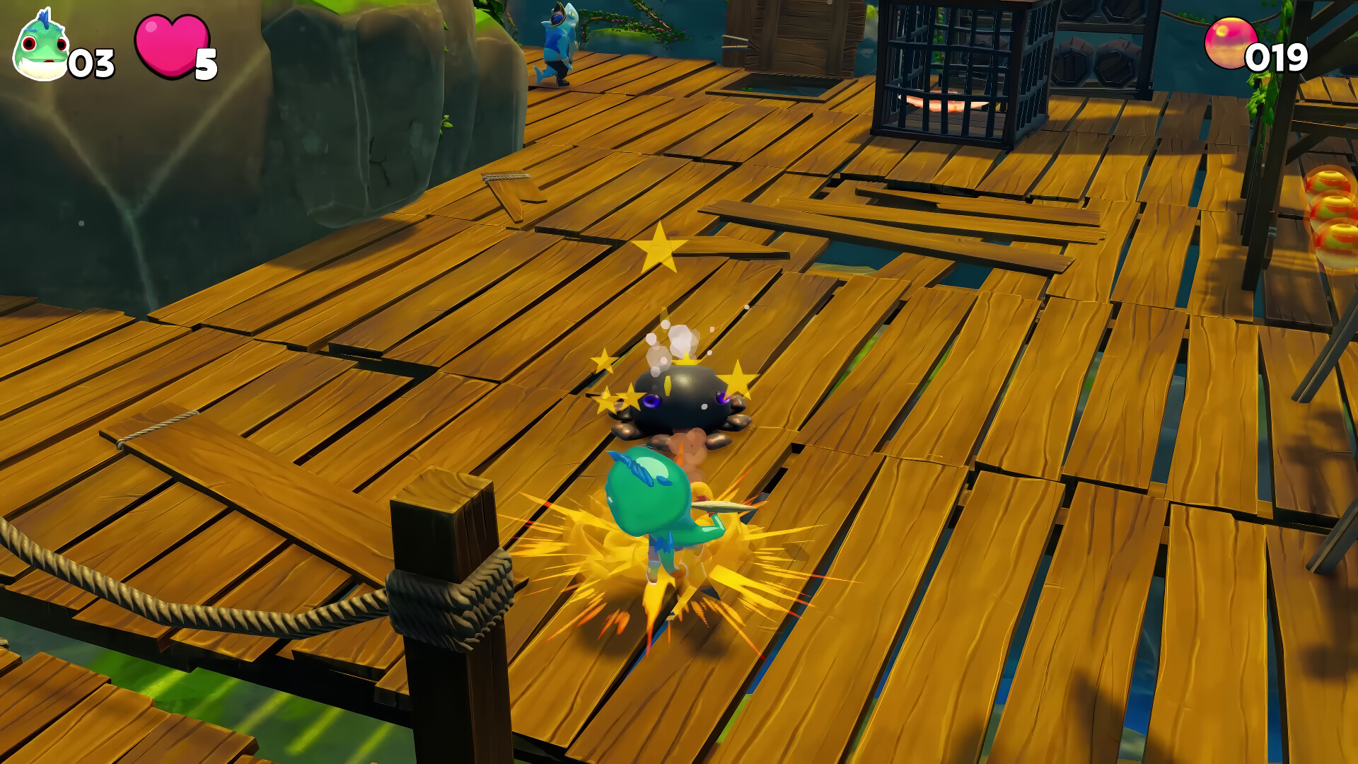 - Rescue your trapped friends hidden throughout the worlds