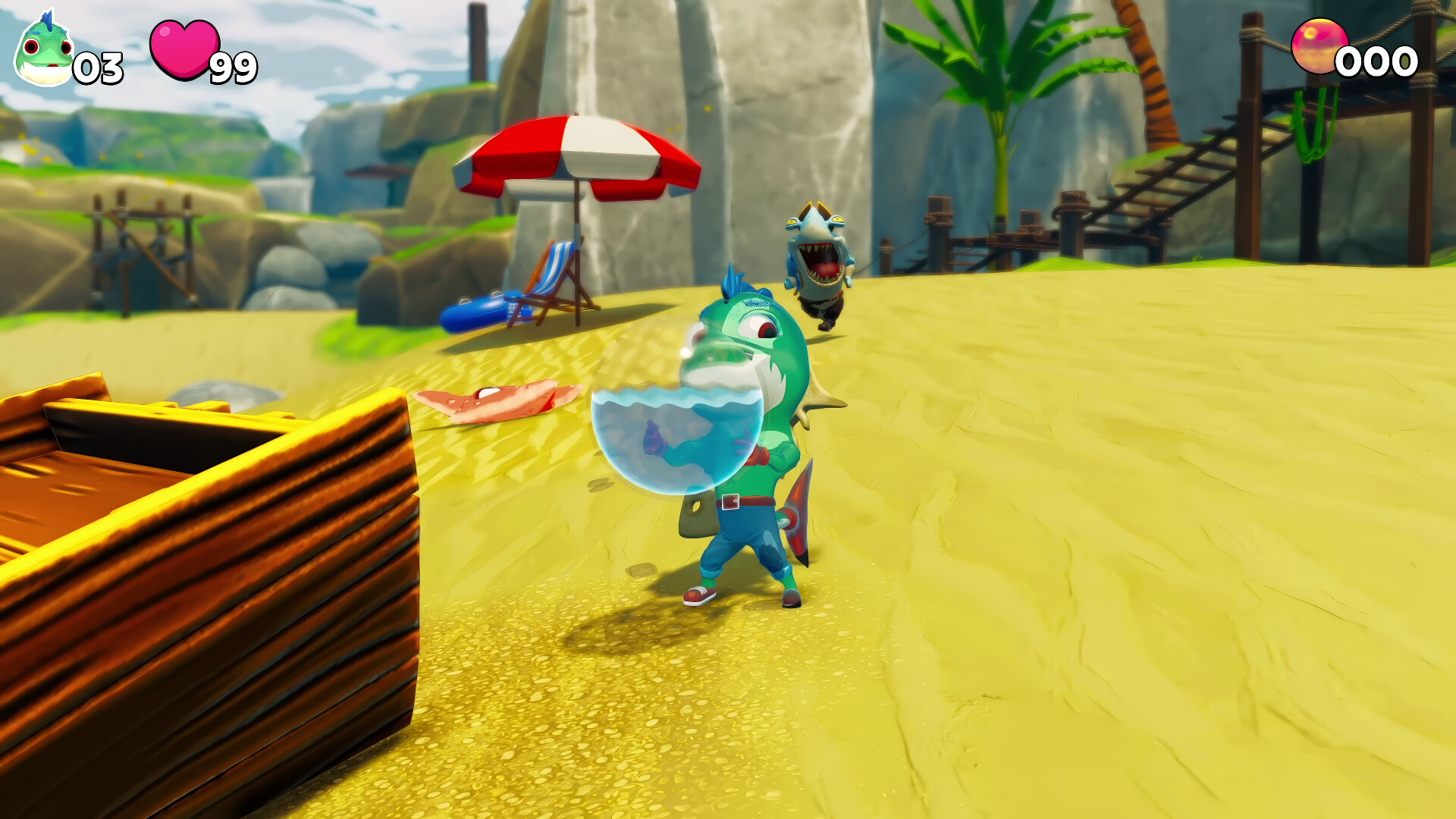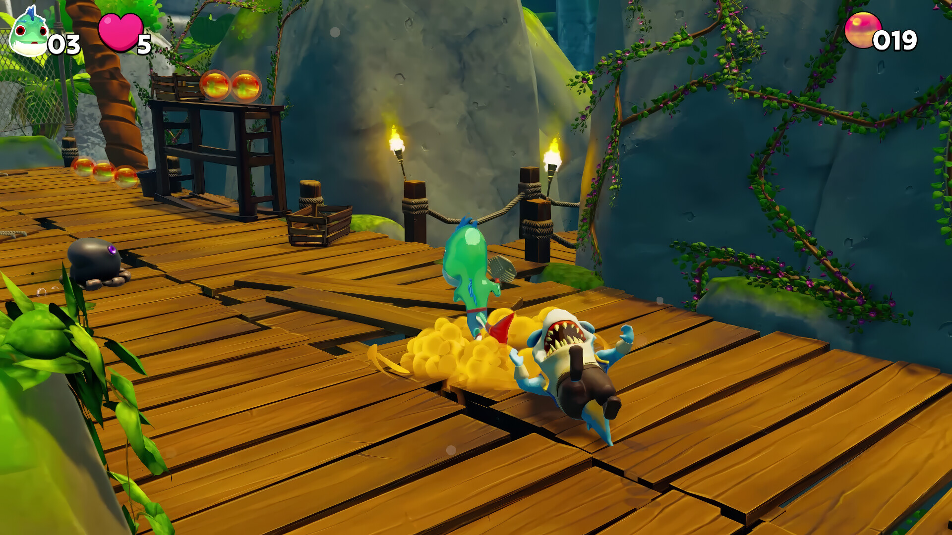 Your journey begins with the help of Lawerene the Lobster who guides you on your insane adventure. Gillbert will need to save his friends held in cages, collect Roe, solve moderate puzzles, defeat enemies and ultimately learn why Brocktopus has held this place captive.