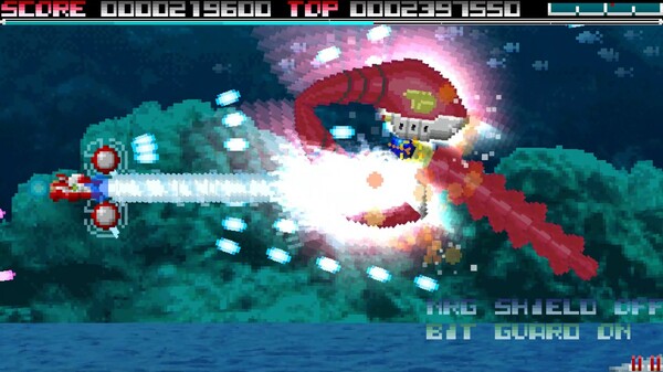 A side-scrolling shooting game where you attack enemies with bits that can change the attack direction.
