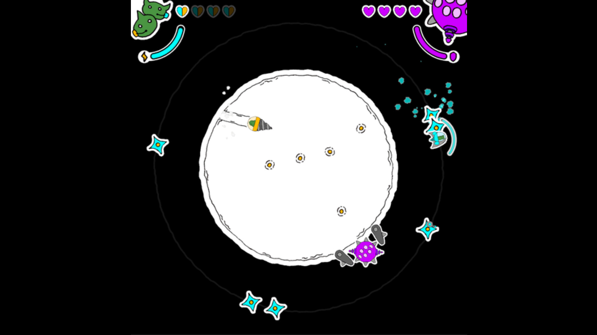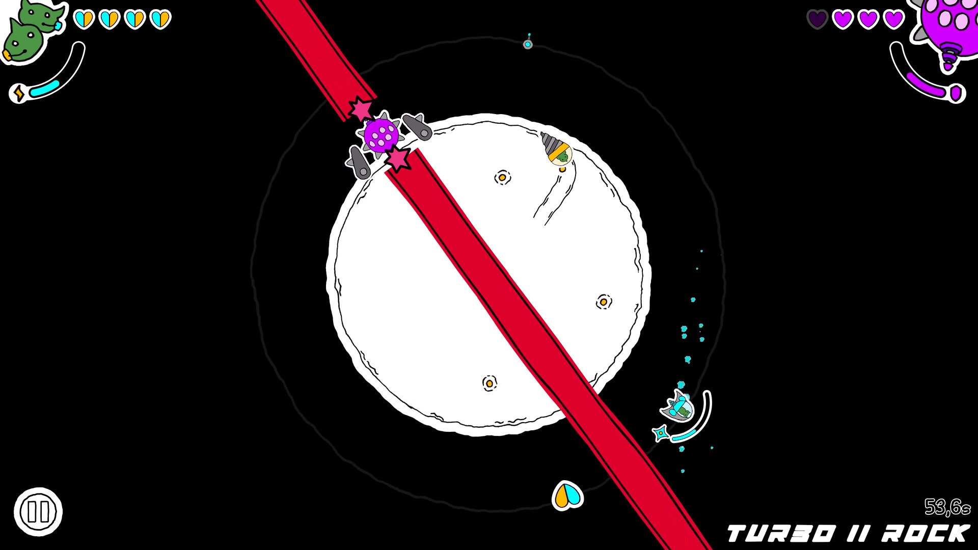 Playing as the alien heroes Luna and Drillian, you must use the unique strengths of your respective spaceships, to defeat her!