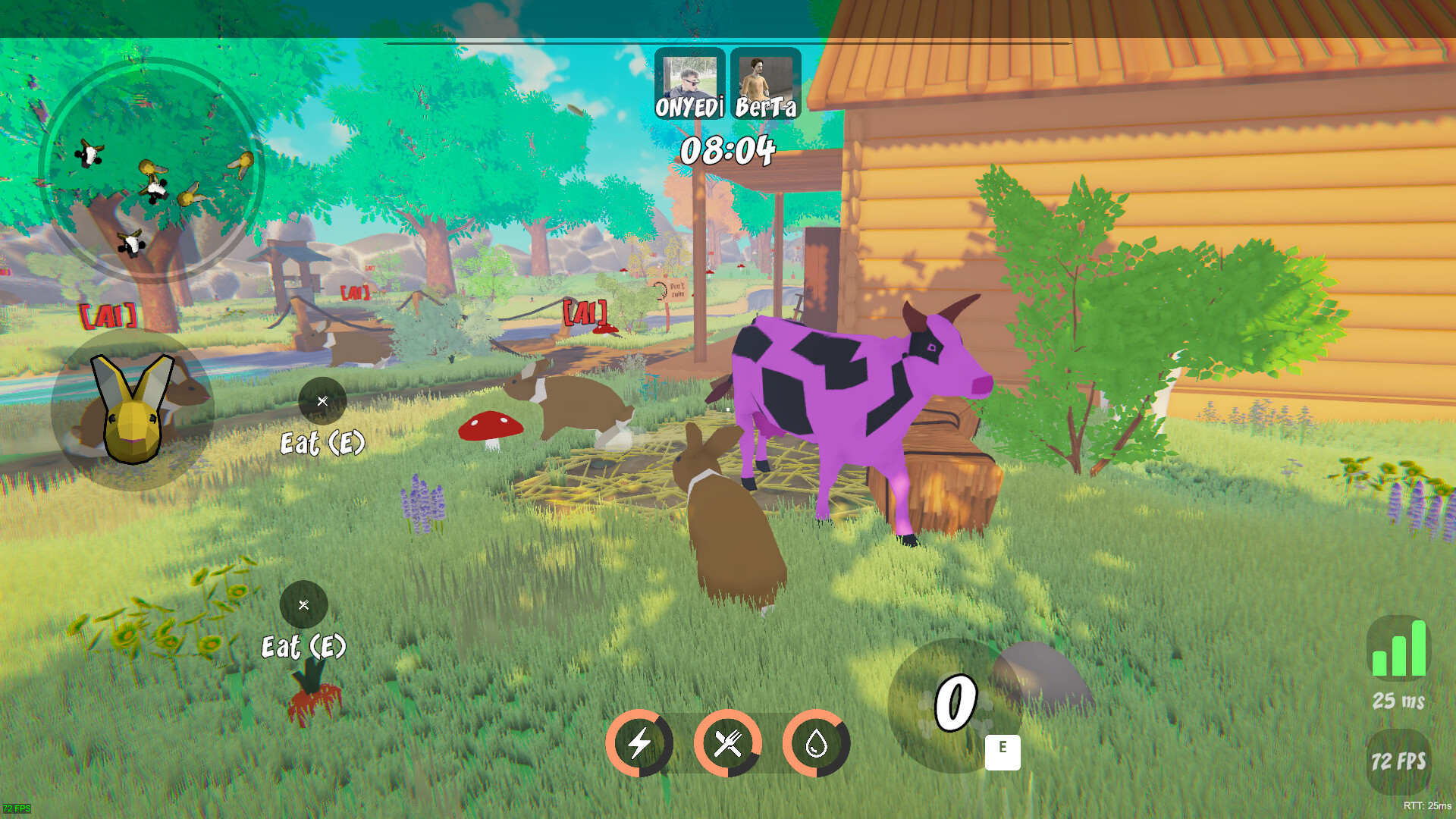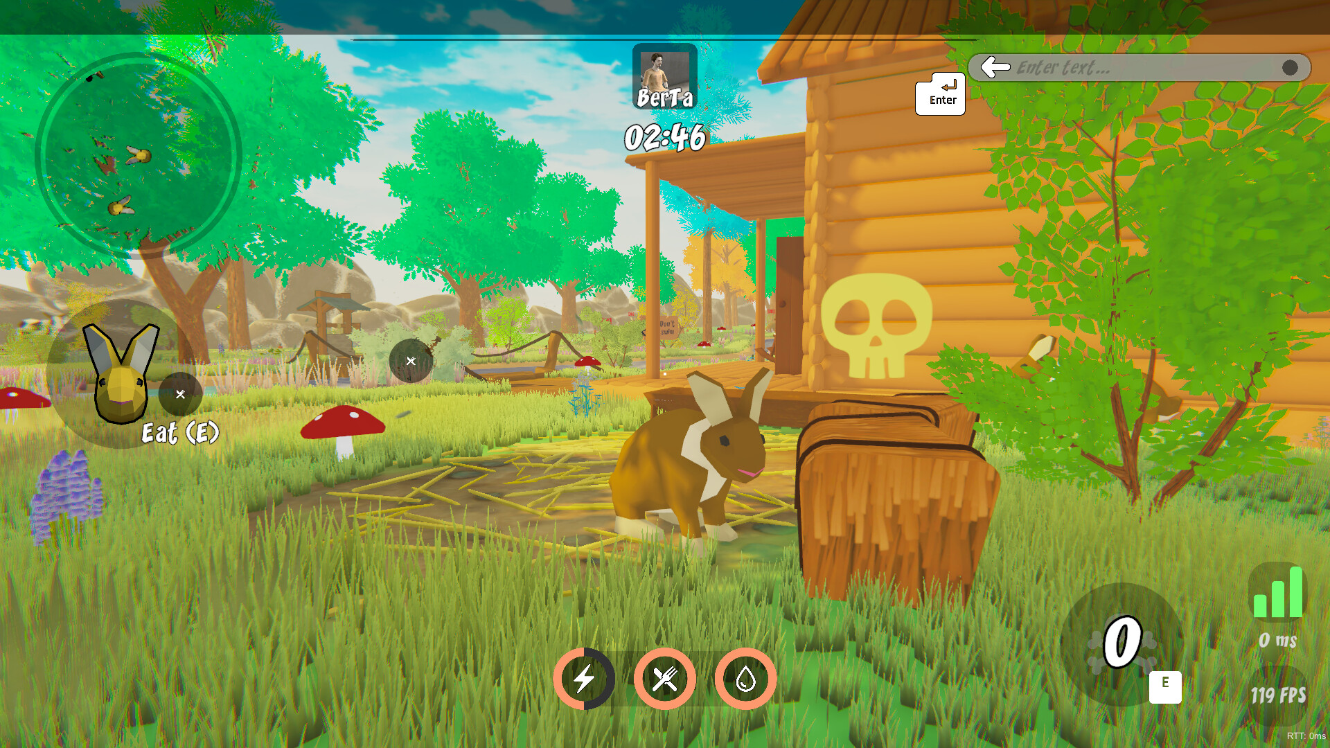 To blend in with the AIs on the map to avoid the hunter, manage hunger and thirst bars to survive, and be the last one standing by betraying the rabbit and making it bait for the hunter.It's time to show your kicks to the hunter.