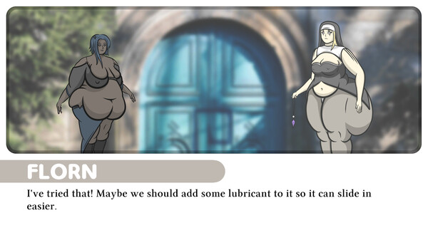 Voluptuous Fantasy is a fetish game that takes place in a magical, medieval world. Dungeons filled with curvy monster girls are scattered around the lands and explored by a group of girls. These girls overcome dangerous situations by increasing their strength, sometimes that means gaining a bit of weight every now and then.