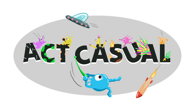 Act Casual is a chaotic multiplayer party game that combines intense ragdoll combat with moments of uneasy peace. Duke out your gripes with your alien crew while avoiding attention from the humans by maintaining disguises and surviving mini games in an array of ever changing stages.