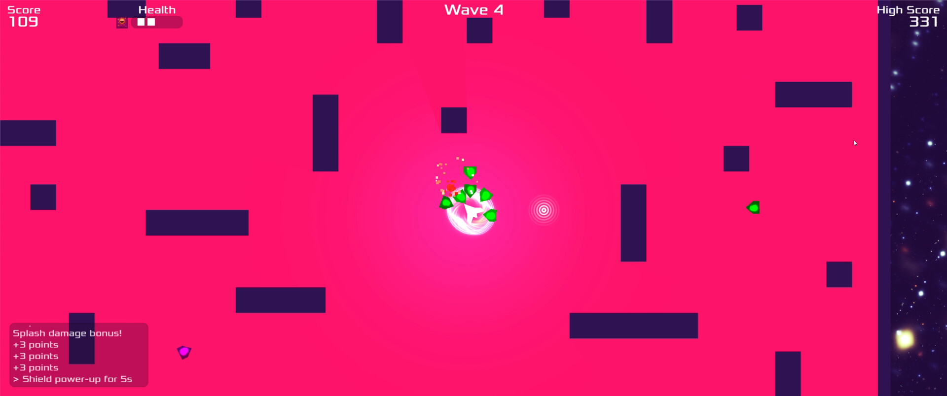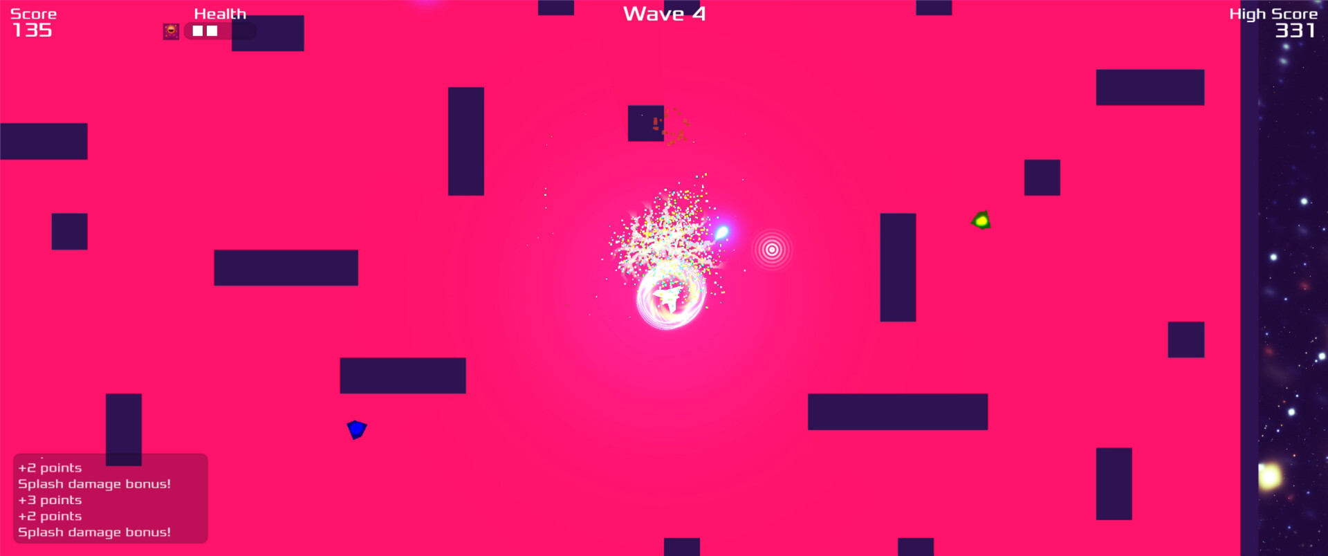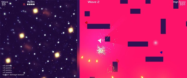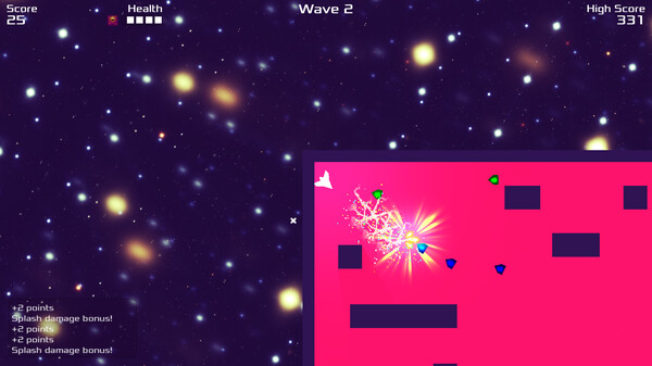 Enter a neon-charged battleground where survival meets explosive energy in this retro, space-themed twin-stick shooter! As you dance through waves of geometric adversaries, each defeated enemy leaves behind a deadly debris field?lure other enemies into these hazard zones to trigger devastating chain reactions and score multipliers.