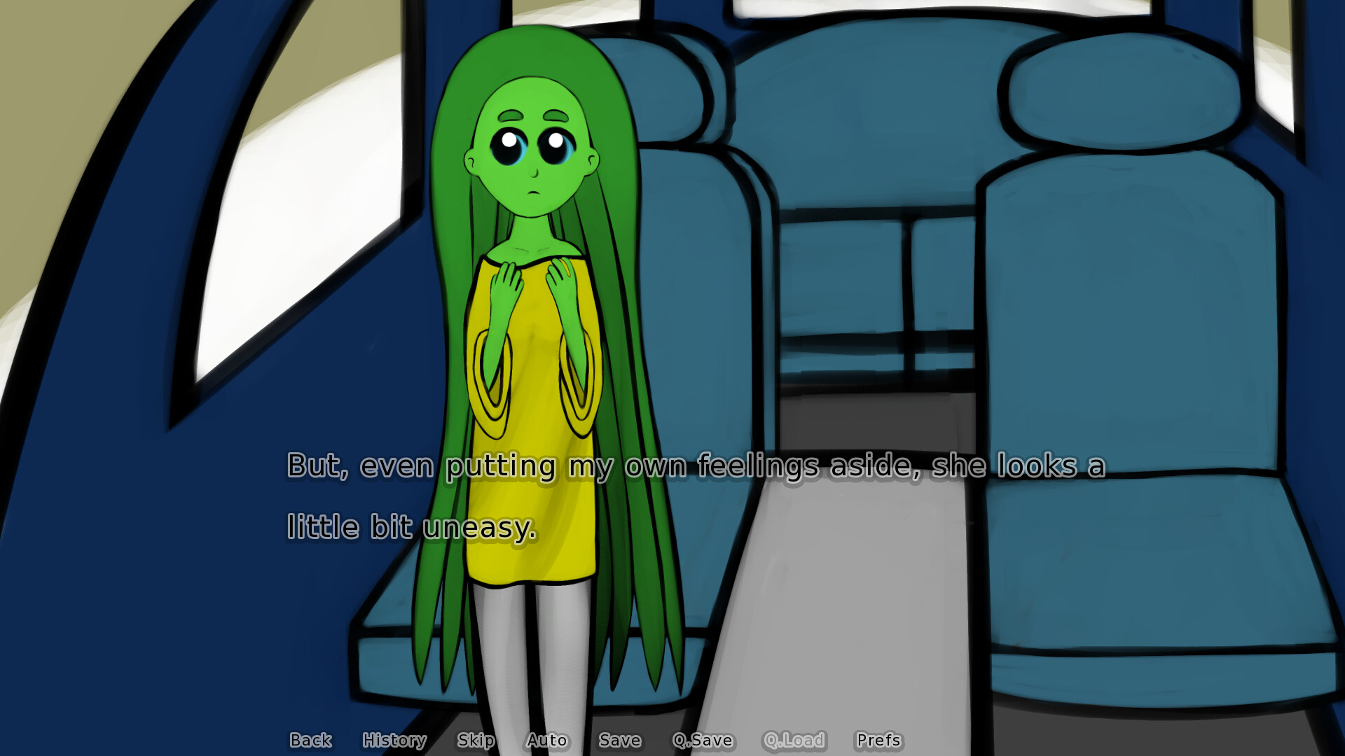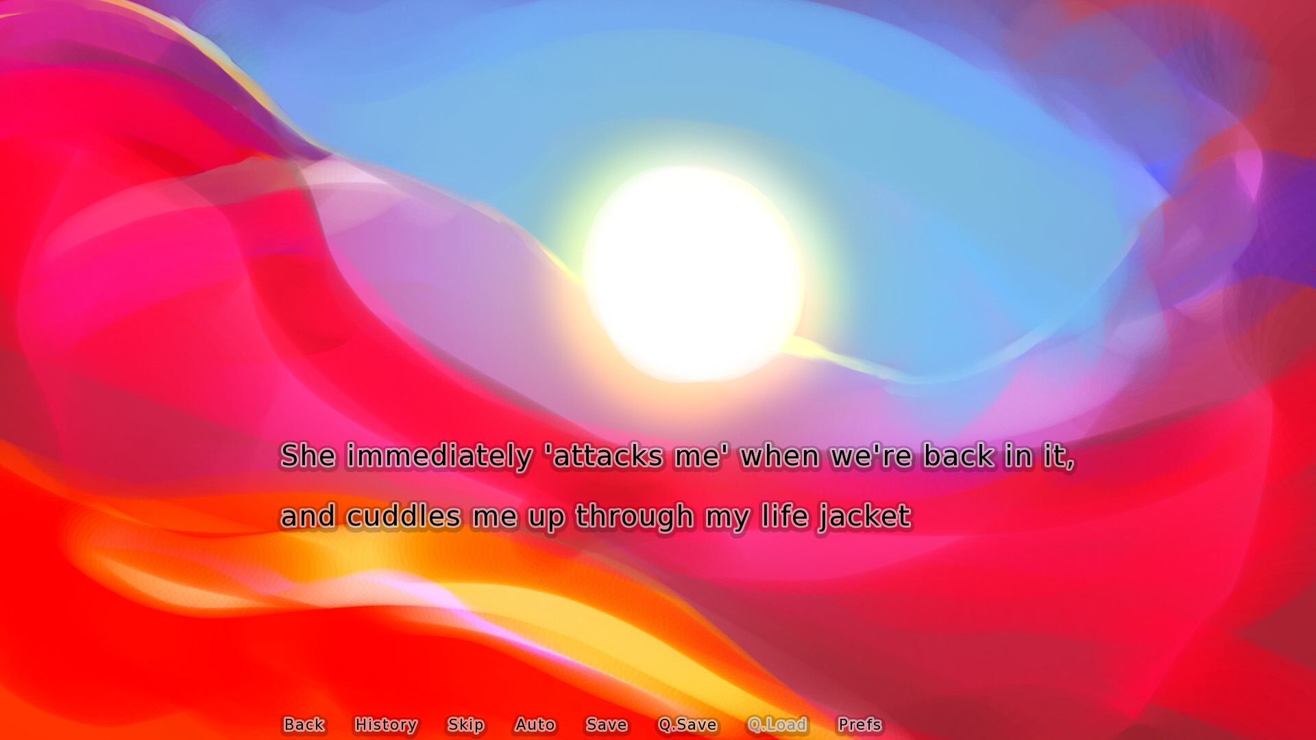 In fact... she stays in the boat and waits for me to wake up, sad about what happened.
