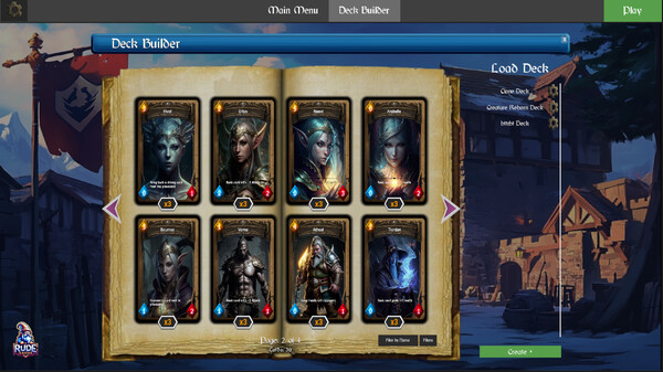 There are four preset created decks to use, which you can edit. You can also create a number of your own decks from scratch using all available cards. All cards available can be used, there isn't any in app purchases or being forced to pay to get better cards.