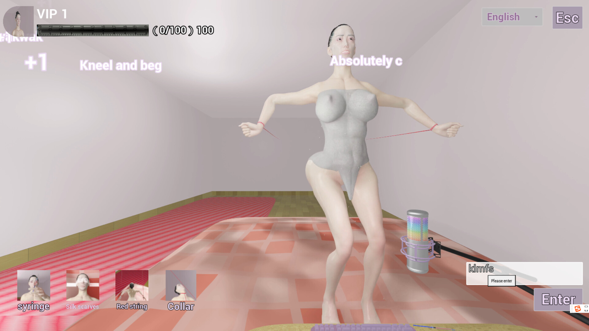 Scenario 4: Yang Yinghan not only tied a red rope with her hands, but also a red rope around her neck, and the rope was tightly pulled by the white-haired uncle, so Yang Yinghan could only sit down slowly......