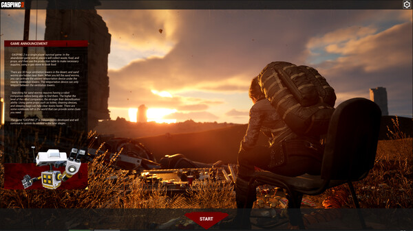GASPING.2 is a single player survival game. In the abandoned game world, players will collect waste, food, and props, and then use the production table to make necessary supplies, using a gas stove to cook food. There are 30 huge ventilation towers in the desert, and sand worms are hidden near them. When you kill the sand worms, you can activate the ancient teleportation device under the nearby ventilation towers. The teleportation device can only teleport between the ventilation towers. Searching for sand worms requires having a robot companion before being able to find them. The higher the level of the robot companion, the stronger their detoxification ability. Using game props such as toilets, cleaning devices, and sleeping bags can help clear toxins faster. There are some notebooks left in the world that can provide some clues you need.
