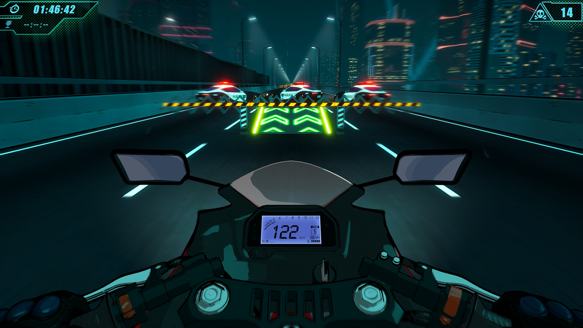 Skill is your greatest ally in the pulsating heart of a retro-futuristic Tokyo, where every second tests your abilities as you weave through cityscapes and dodge obstacles with precise control and razor-sharp reflexes.