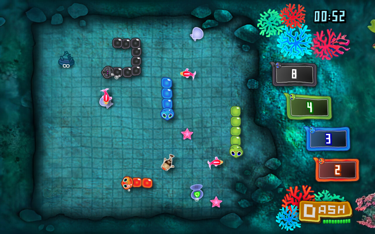 Dragon balls occasionally appear in shells and will elevate your snake self to Dragon King of the sea, increasing speed and giving strength enough to devour dangerous hermit crabs.