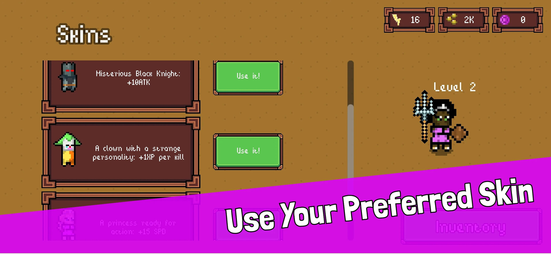 Sammle und verbessere erstaunliche Gegenst?nde und Power-Ups, die dir bei deinem Abenteuer helfen. Von Schwertern und Schilden bis hin zu Tr?nken und Schriftrollen findest du viele n?tzliche und lustige Gegenst?nde.